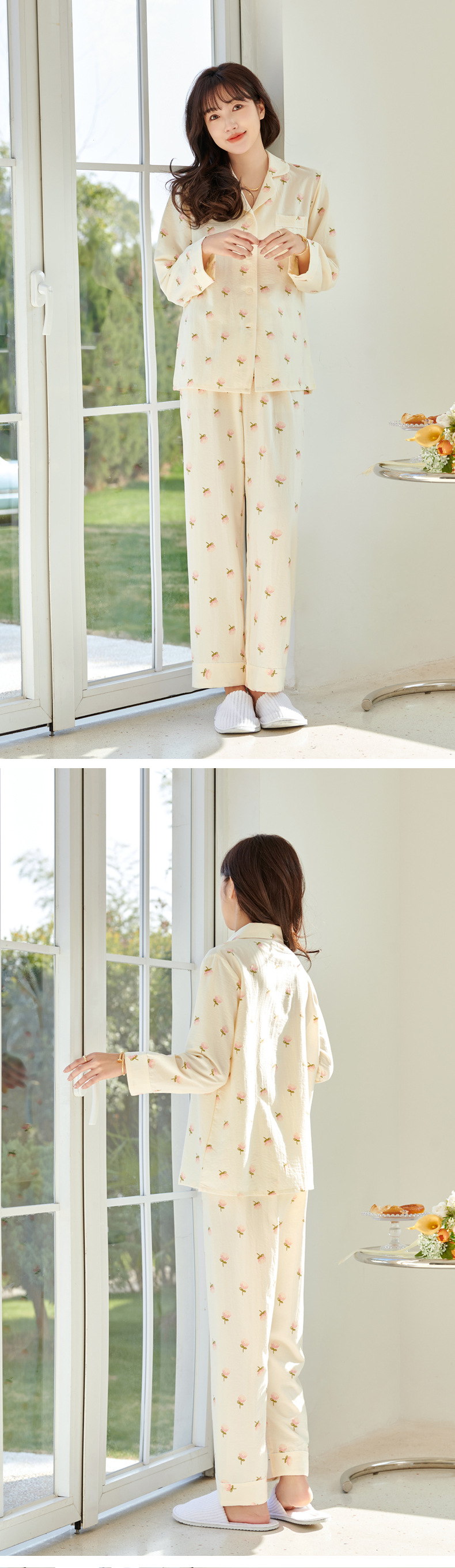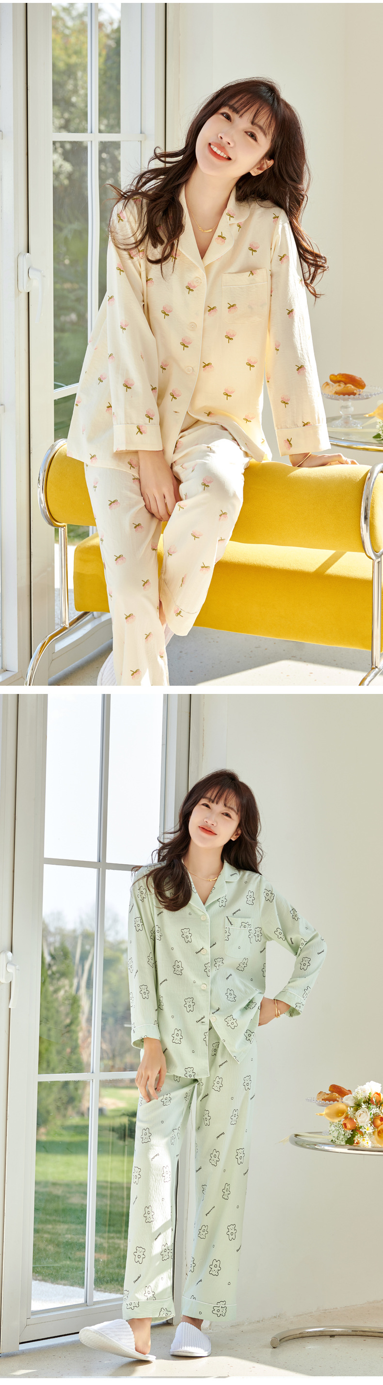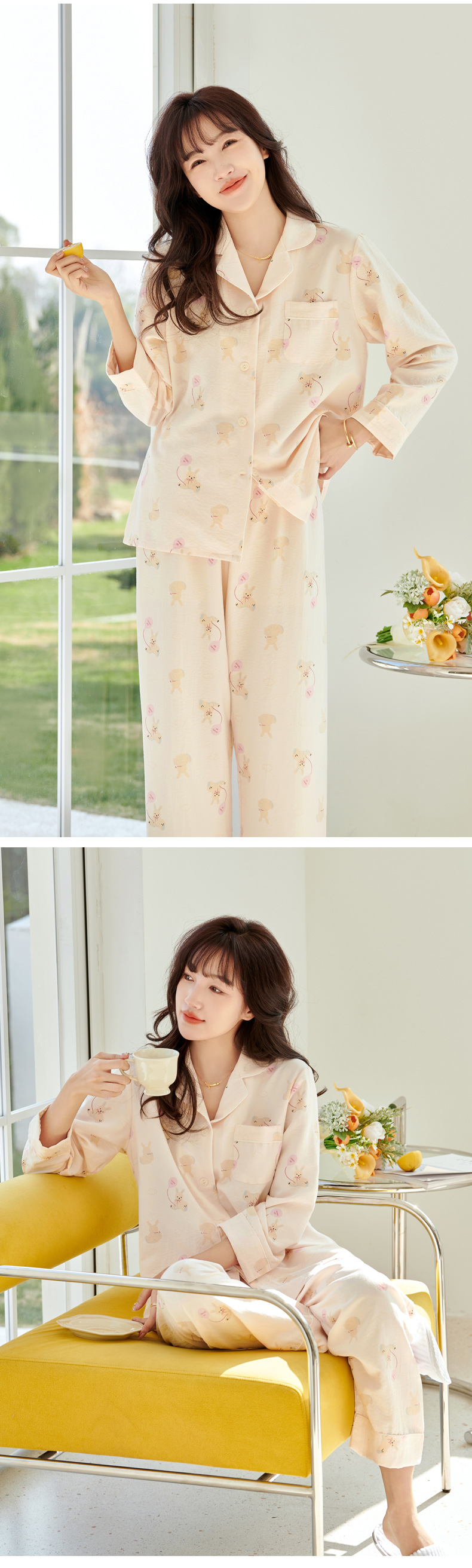 2024年春夏新品レディースパジャマセット雲綿ホームウェア長袖長ズボンカーディガンルームウェア