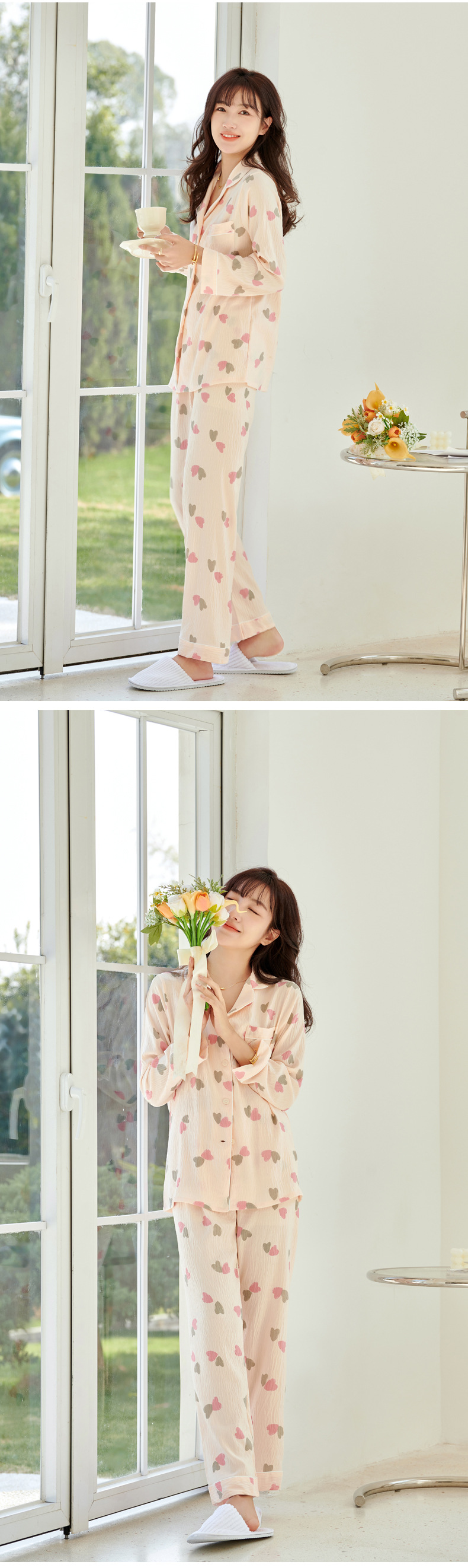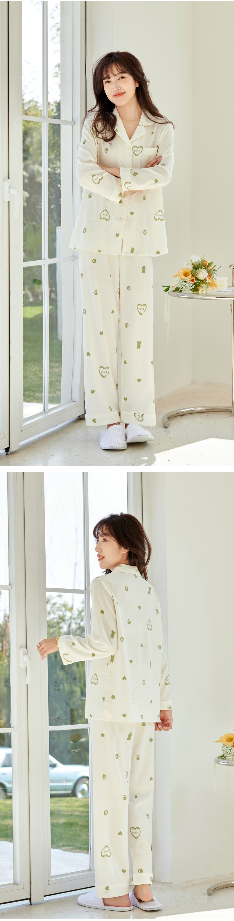 2024春夏新品パジャマレディーススーツ長袖長ズボン人字柄プリント氷糸ホームウェアカーディガン