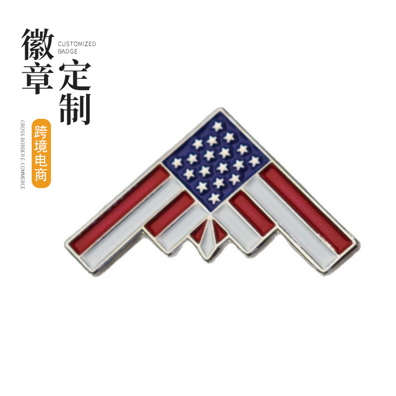 B2爆撃機をイメージしたアメリカ国旗塗装メタルバッジ、塗装アメリカンメタルバッジのカスタム