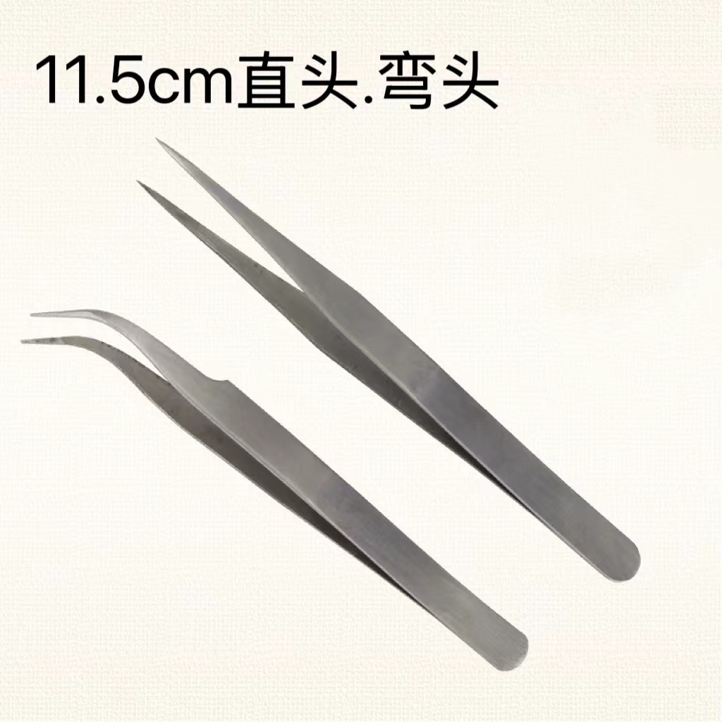 11.5cm加长加厚弯头直头园艺手工多肉挑毛维修工具夹子不锈钢镊子