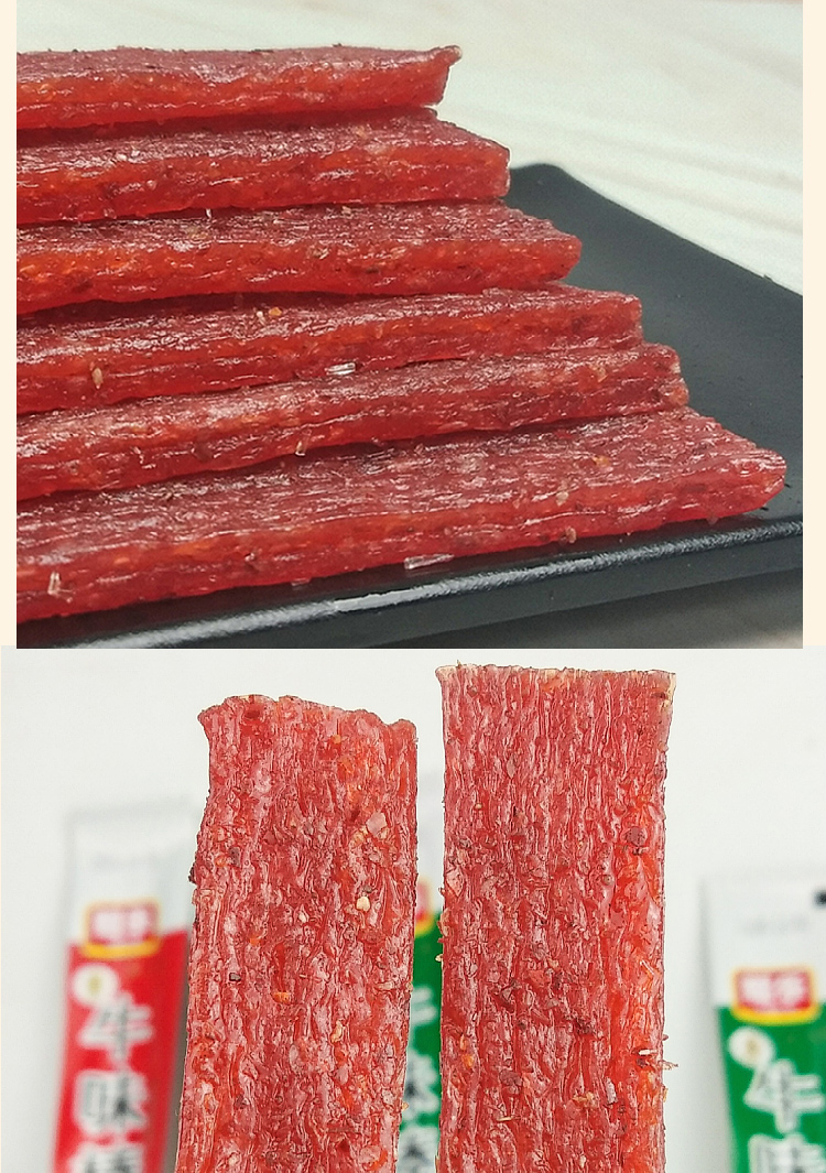 バーベキューの味の手は牛肉の辛辣な条の酒飲みのグルテンを引き裂きます。