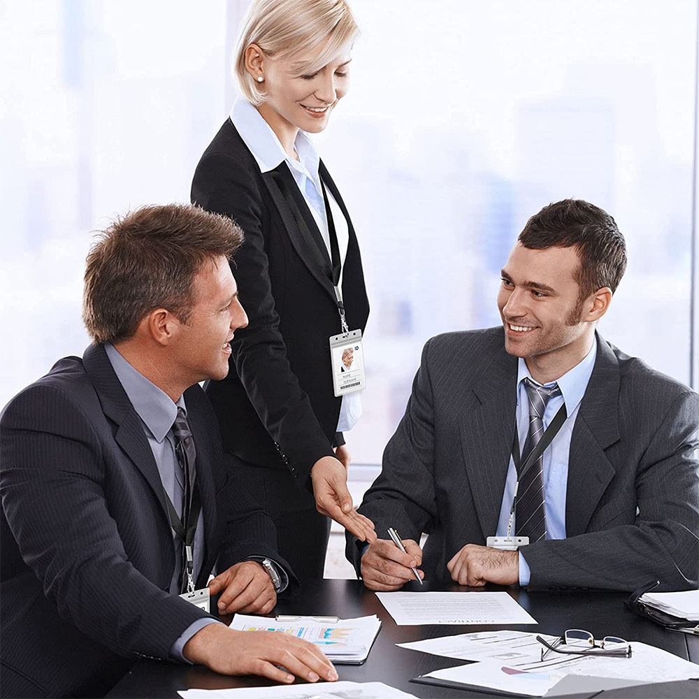Puの革の証明書のカードのカバーの仕事の札の門限のカードのカバーの従業員の胸のカードの食事のカードは引きやすいです。