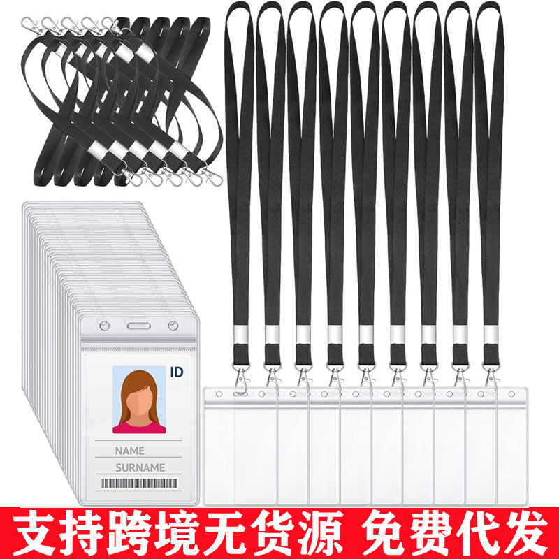 亚马逊热销工作证件卡套带挂绳胸牌胸卡身份证厂牌卡套PVC透明卡