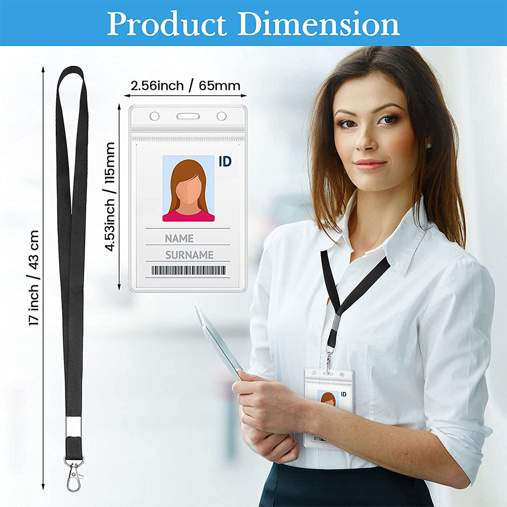 キャンパスの学生の透明なカードカバーのストラップ付きの伸縮性のある証明書カードカバーのバスカードカバーの食事カードの胸カードの門限カードカバー
