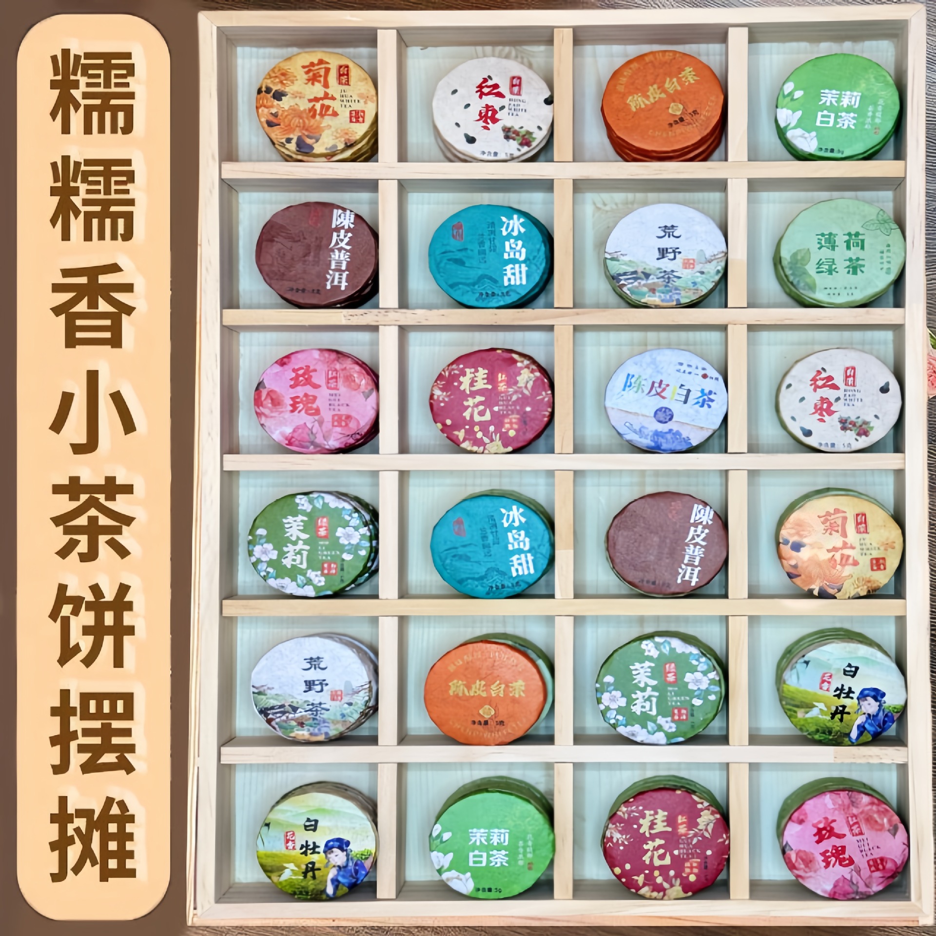 雲南プーアル茶小餅、陳皮白茶、紅棗桂花紅茶、ジャスミン緑茶、寿眉小丸餅
