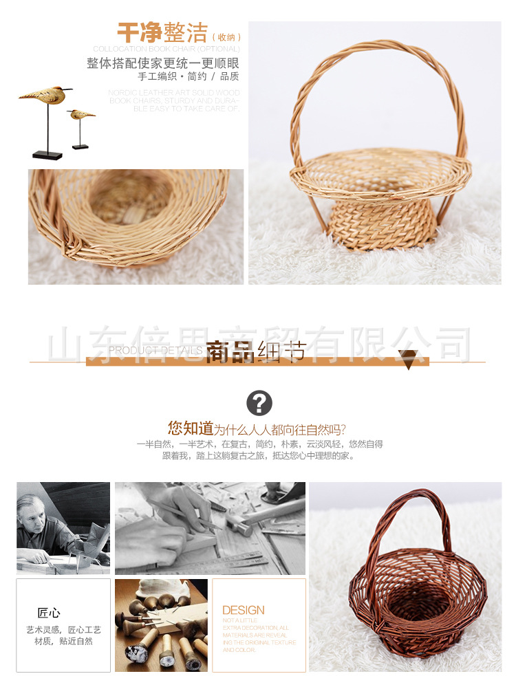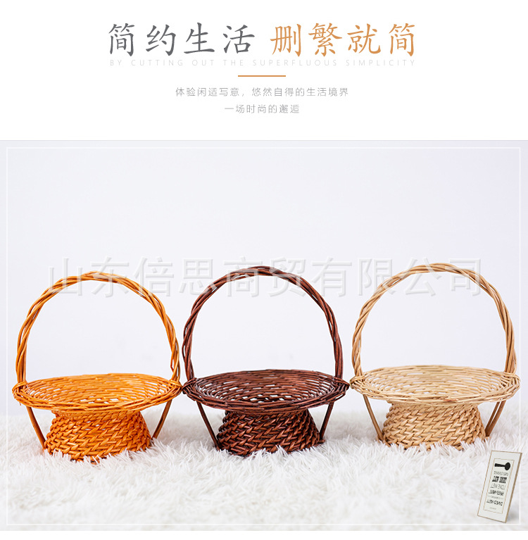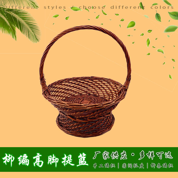 柳编收纳高脚提篮水果蔬菜提篮特色酒店餐具藤编干果点心筐采摘篮