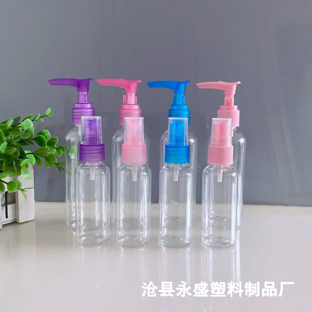 50ml PETクリップポンプローションボトル、カラープラスチックプレスダックビルボトル、100ml透明スプレーボトル