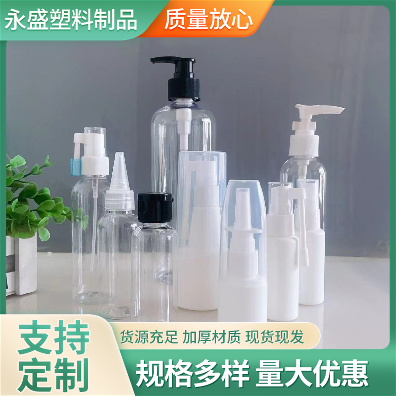 100ml平肩プラスチックボトル、200ml小ネズミ型スプレーボトル、500ml円筒型直肩ローションボトル