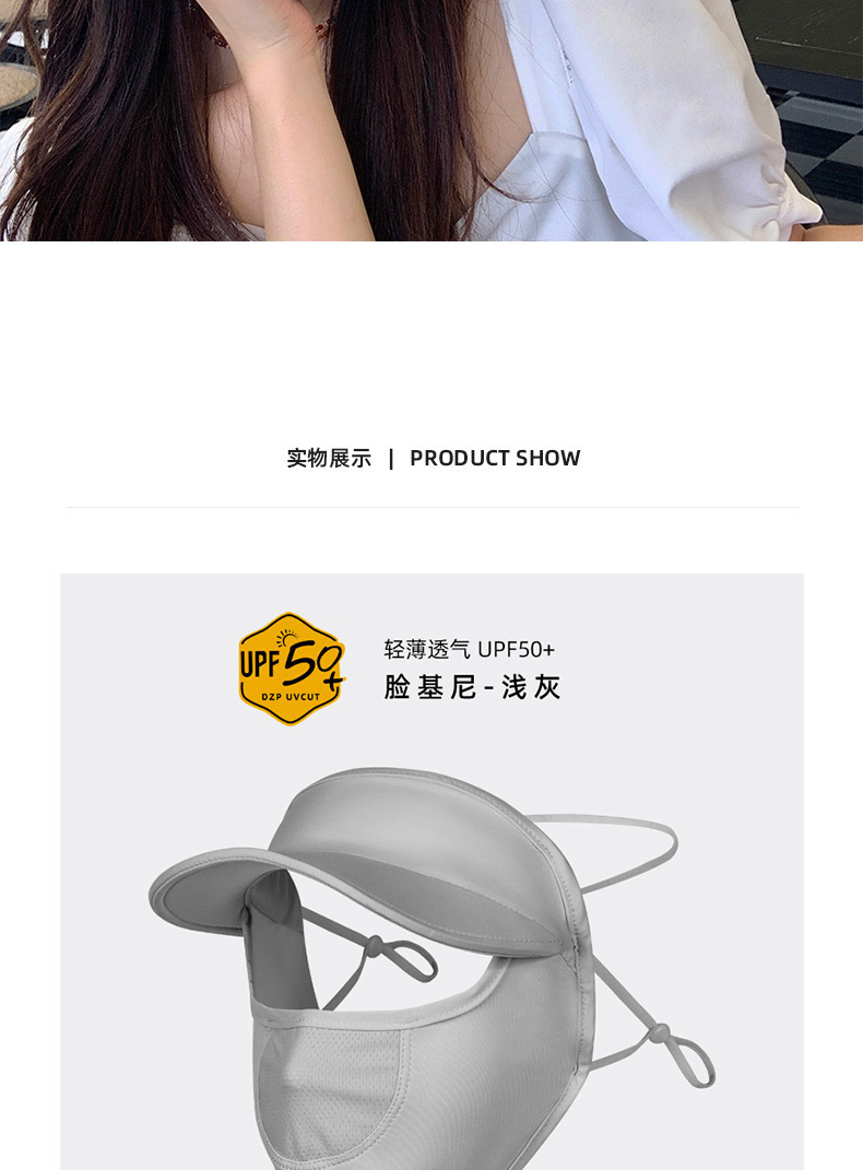 夏用女性用UPF50日焼け止めマスク、顔全体を覆う、紫外線防止、つば付きフェイスマスク、肌に優しい氷のような感触