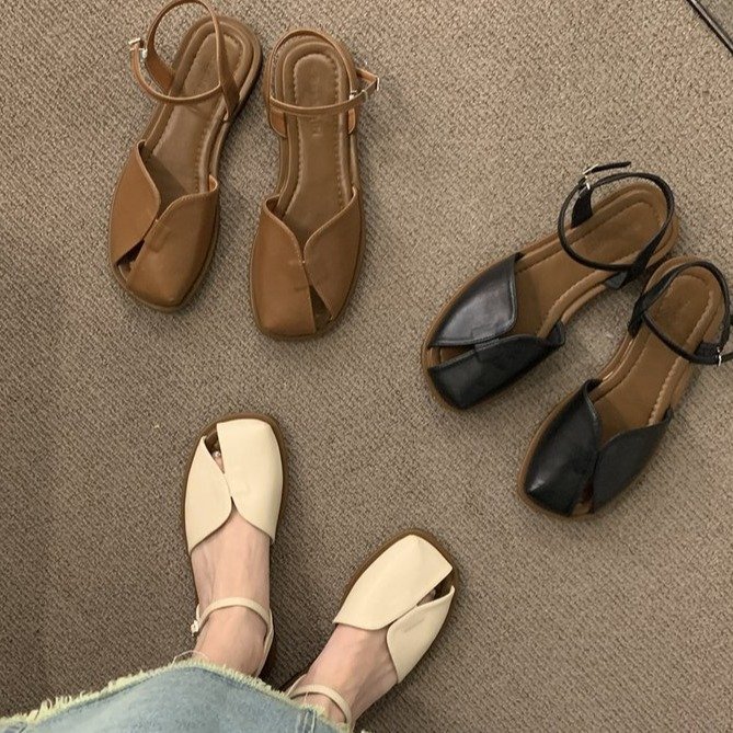 包頭サンダル女性2025年新夏韓国版森系レトロなアンドロメダ風カジュアルソフトフラットローマ靴