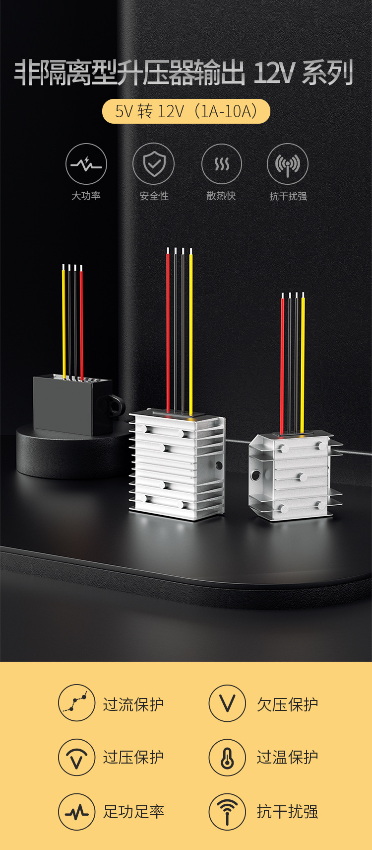 DC-DC変換器5v回転12v昇圧モジュールハイパワー直流車載電源変換器