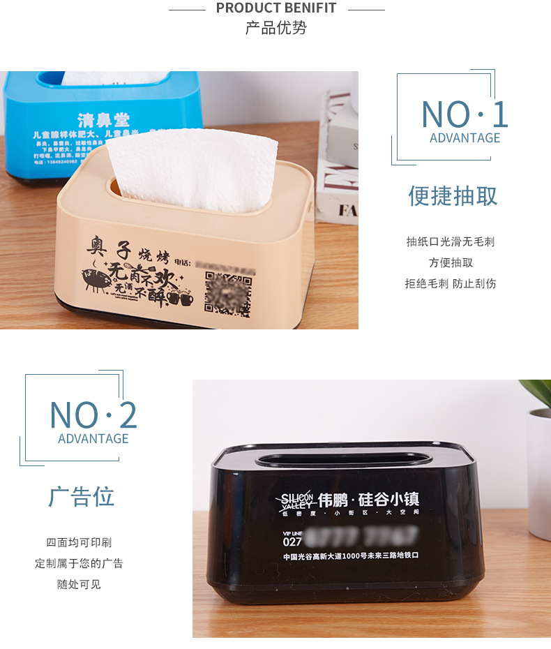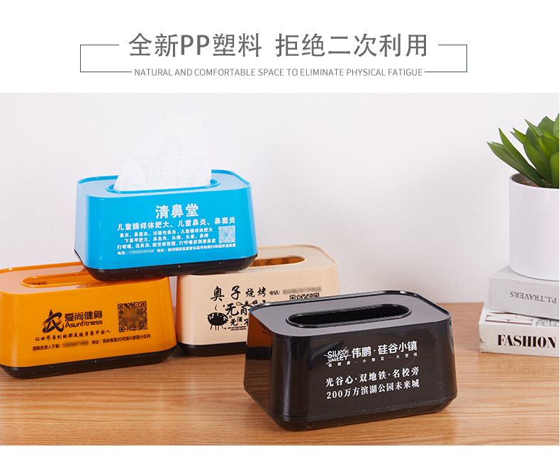 広告のティッシュの箱のオーダーメイドのプラスチックの引き出しの箱のオーダーメイドのロゴの文字のナプキンの箱のオーダーメイドの活動の宣伝