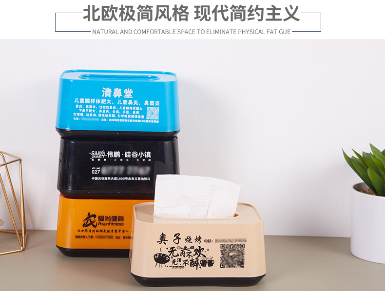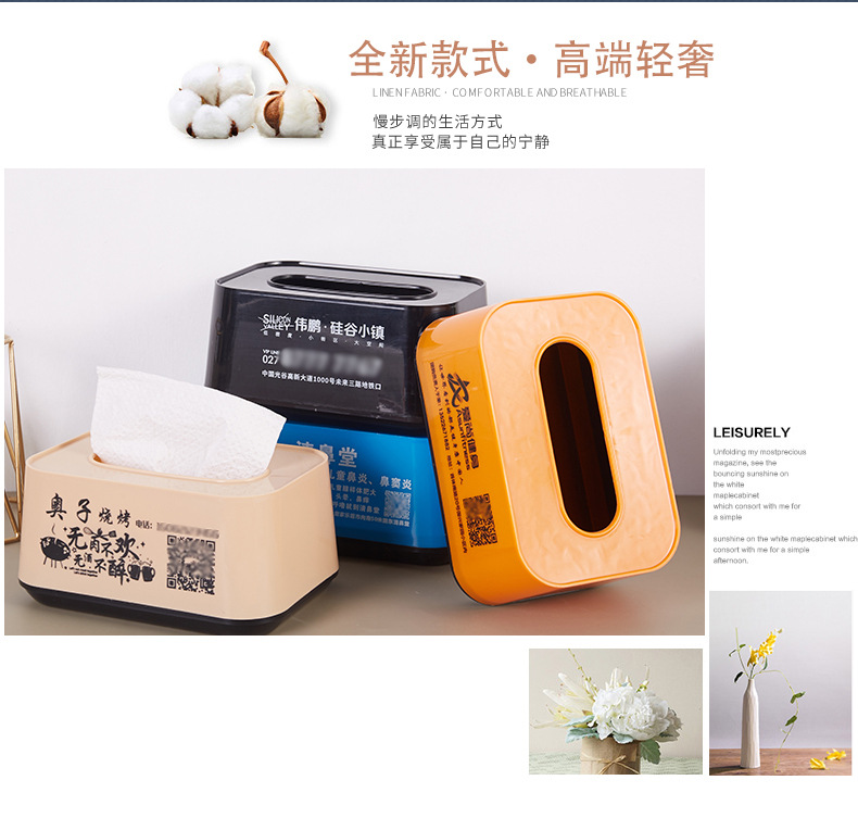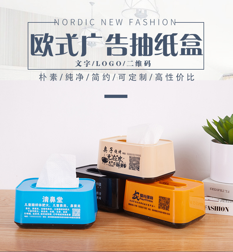 カラー ヨーロッパ式の軽い豪華なティッシュケース100個,広告のカスタマイズに対応,ロゴ文字二次元コードを印刷できます