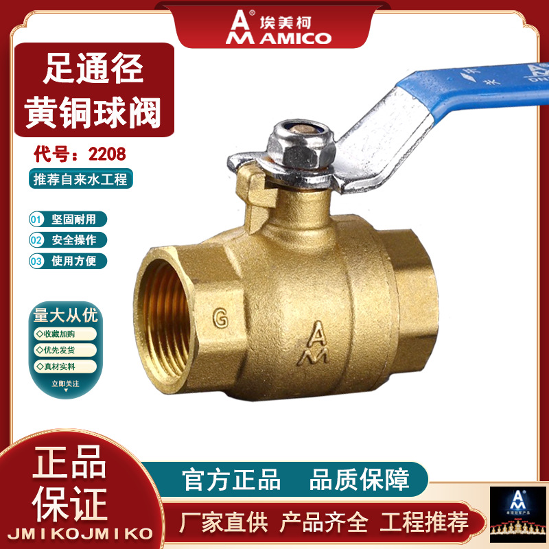 埃美柯正品黄铜2208全通径球阀足通径超大流量内螺纹加厚经久耐用