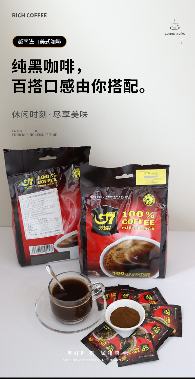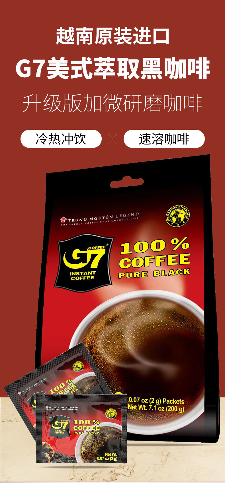 G7授権店ベトナム輸入アメリカ式純ブラックコーヒーインスタント無糖零脂減健体提神学生純正品