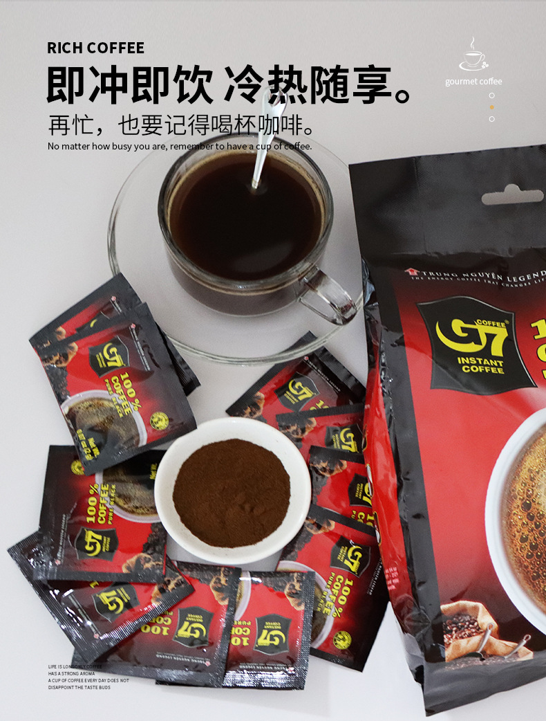 原装越南进口G7美式纯黑咖啡50袋速溶无蔗糖学生批发100克