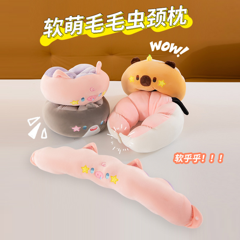 便携卡通u型枕羽绒棉旅行枕坐车睡觉神器坐飞机靠脖枕毛毛虫颈枕