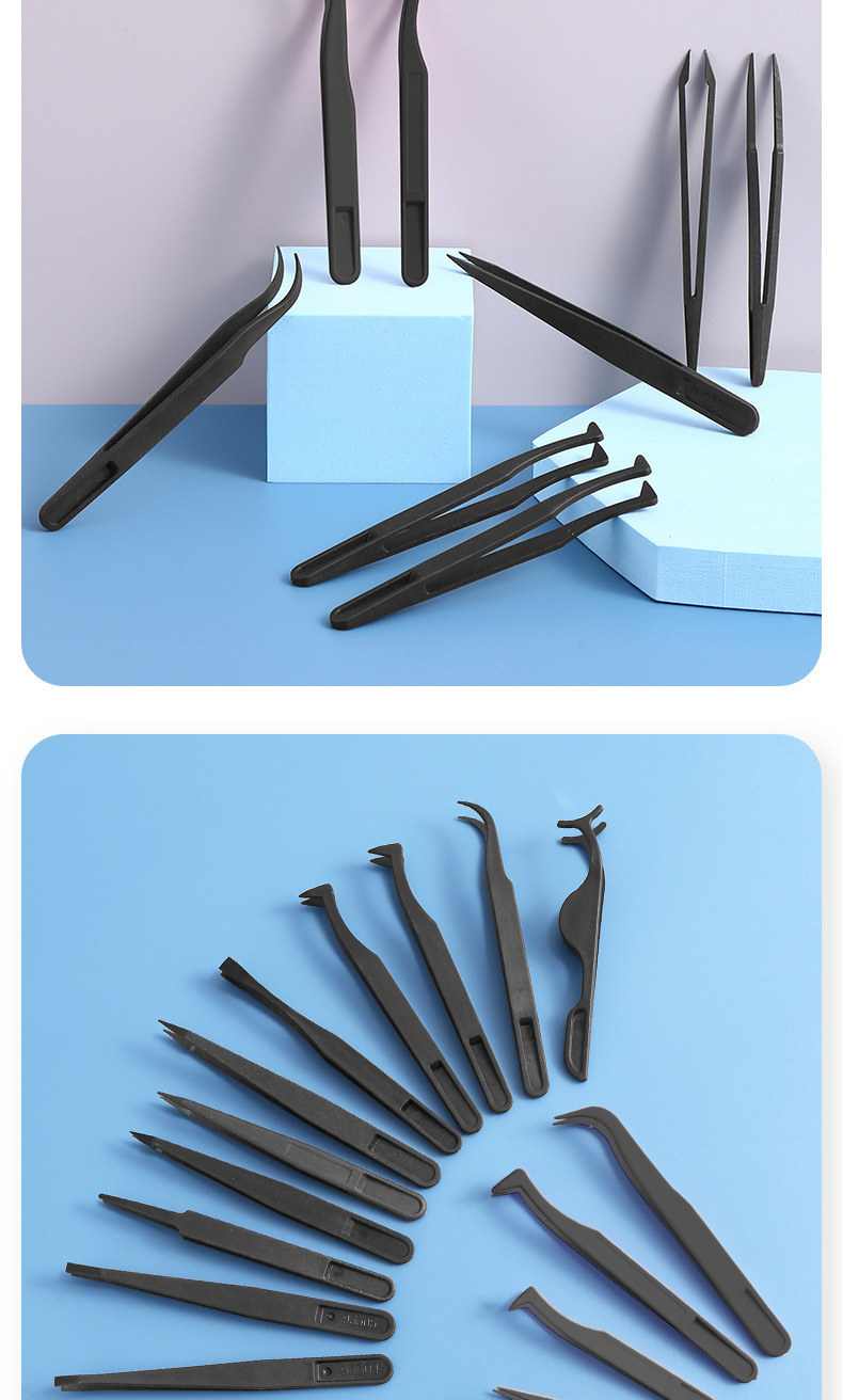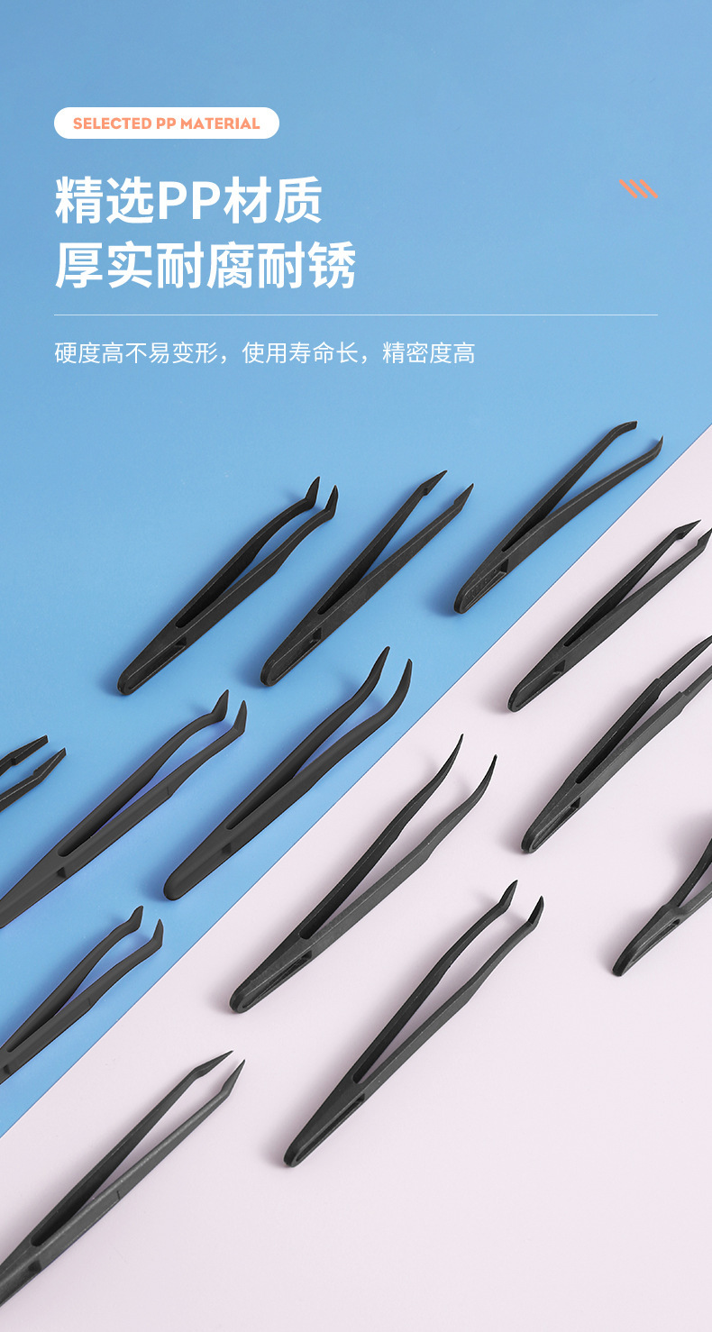 帯電防止ピンセット、エルボチップ、カーボンファイバーピンセット、プラスチックピンセット、修理用工業用ピンセット、環境に優しい絶縁クリップ