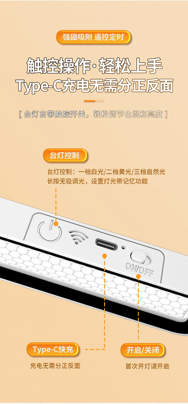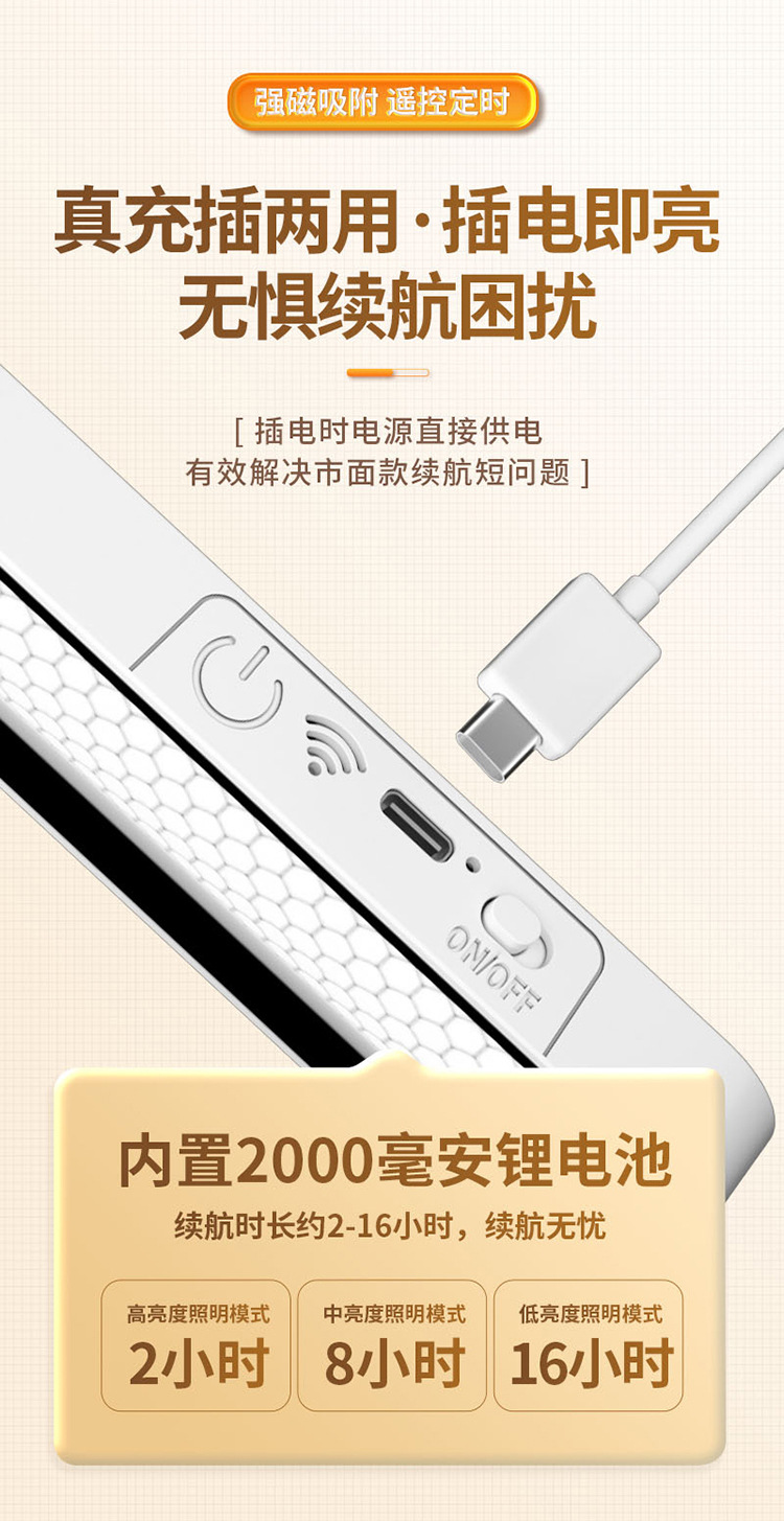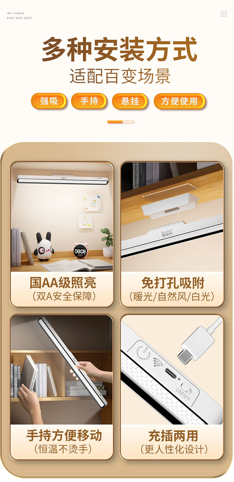 台灯学习专用护眼学生书桌磁吸顶灯宿舍儿童充电阅读灯长条酷毙灯