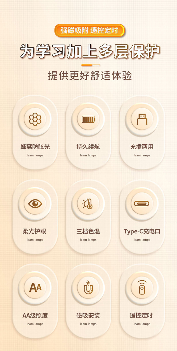 LED时钟磁吸充电卧室床头阅读灯学习护眼台灯学生宿舍专用可调光