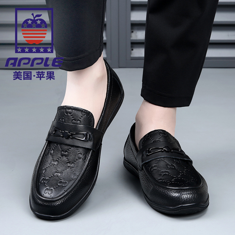 休闲皮鞋夏季2025年新款一脚蹬豆豆鞋男真皮男士乐福鞋
