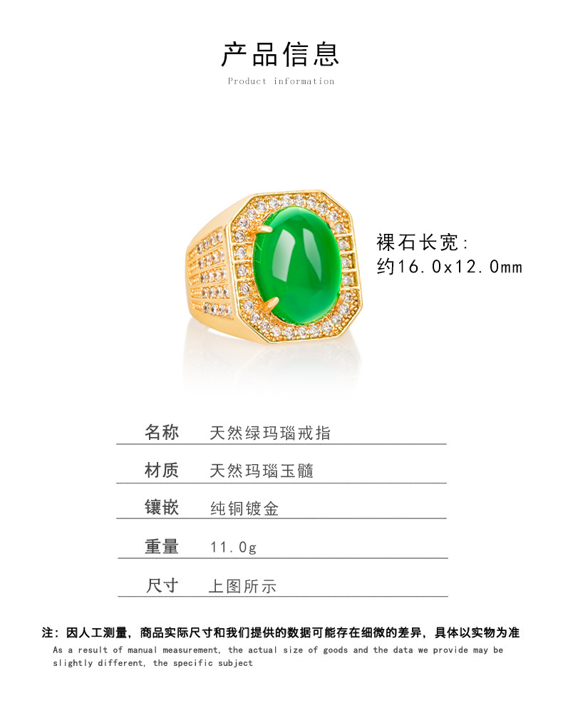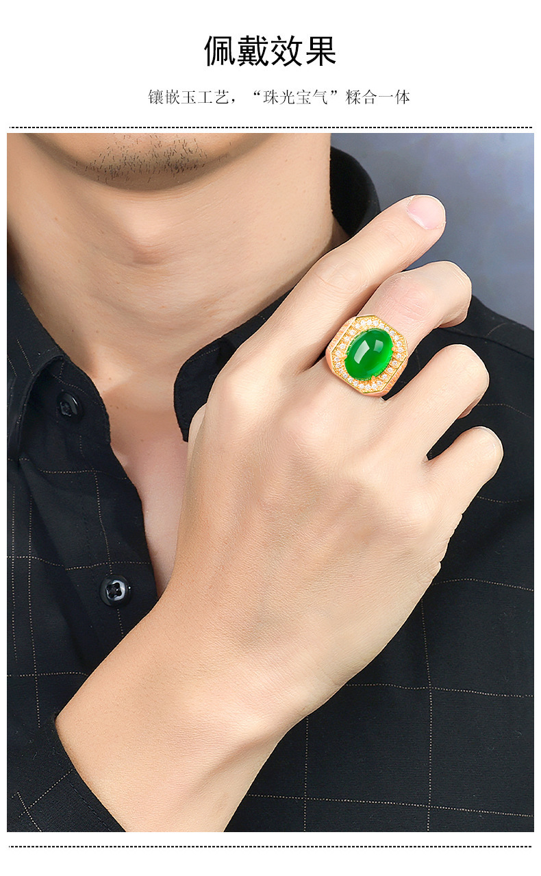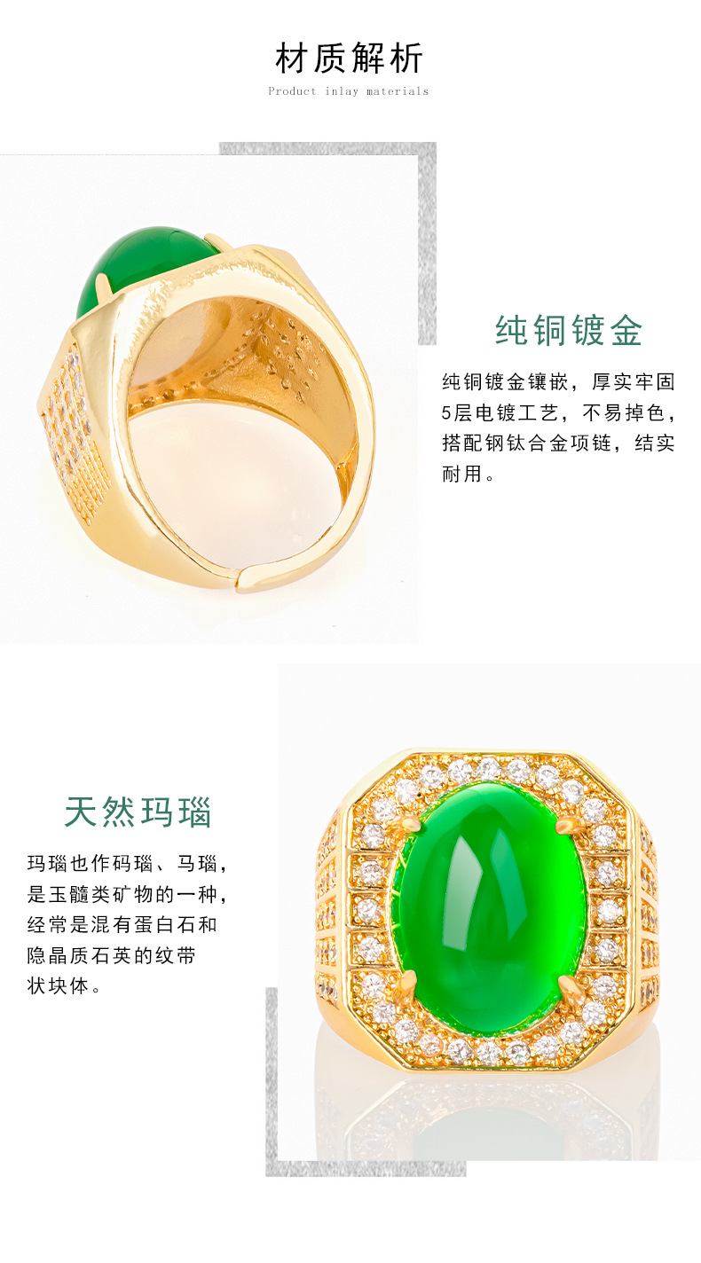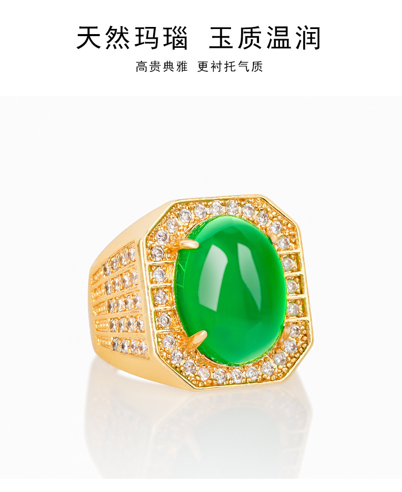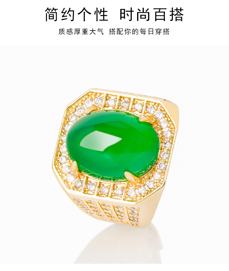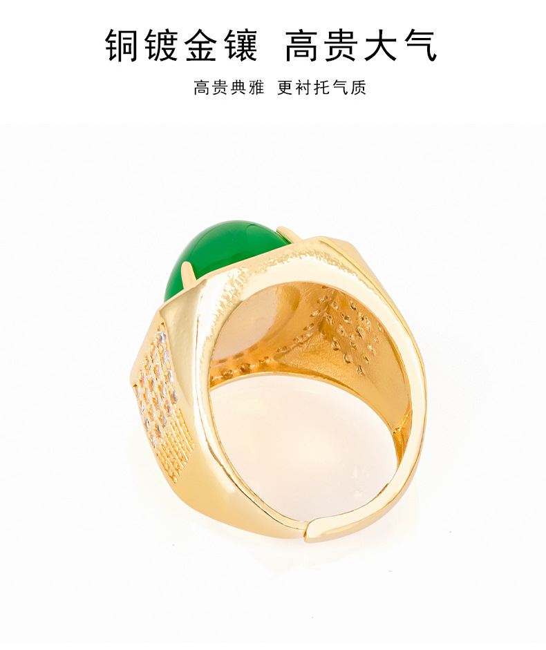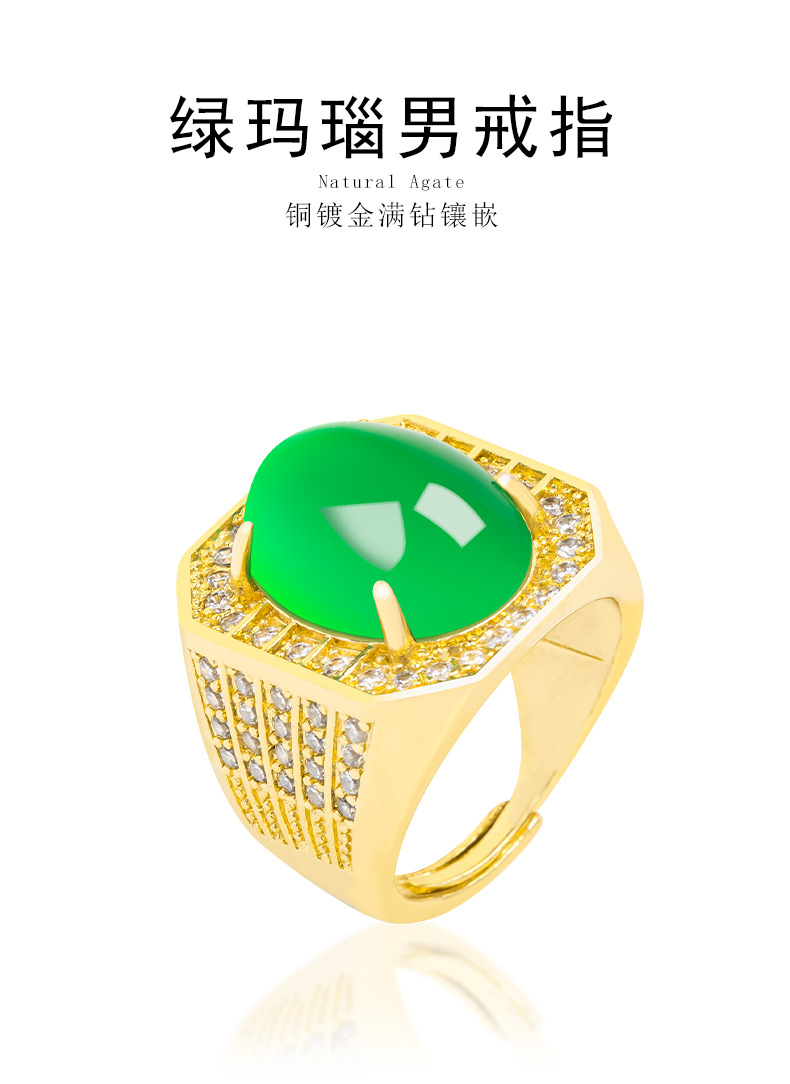 天然の緑瑪瑙の指輪の銅の金メッキは玉髄の氷の玉の石の男性の指輪のファッションのペンダントの卸売りを飾ります。