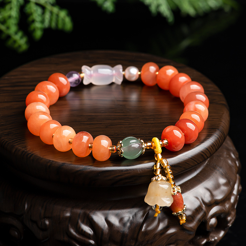 天然の東陵玉のかぼちゃの手はオリジナルの国風の個性の女性のガーネットの石を刺して玉を隔ててブレスレットの卸売りを編みます。