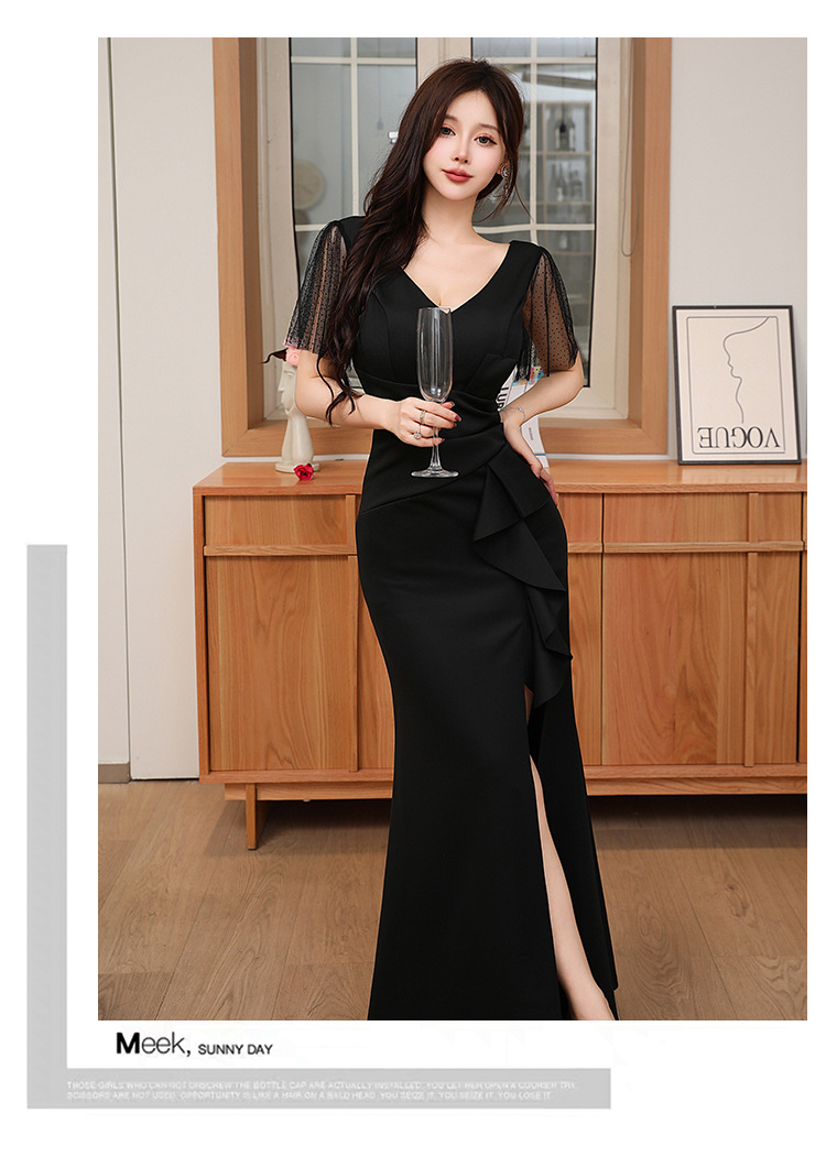 吊带晚礼服女夜总店佳丽主持人生日晚宴工作服纯欲轻奢长裙轻奢风