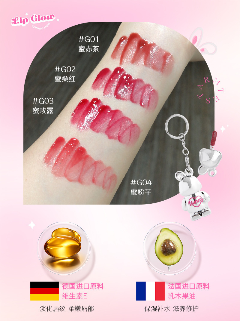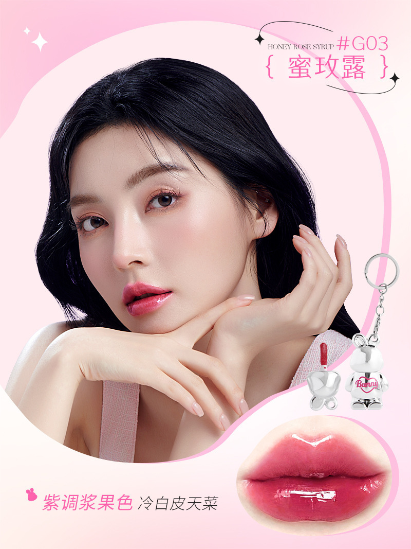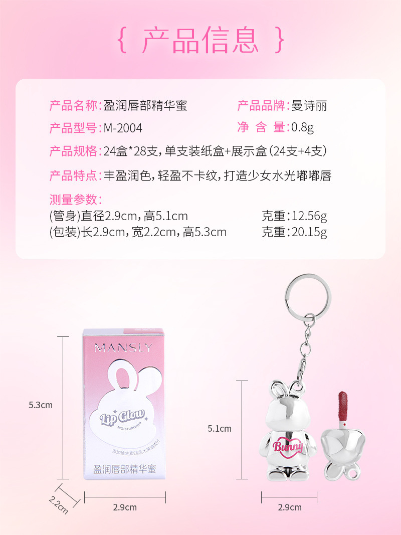 曼詩麗小萌兎鏡面唇釉潤いが白くて、カップの唇の蜜がつきにくいです。