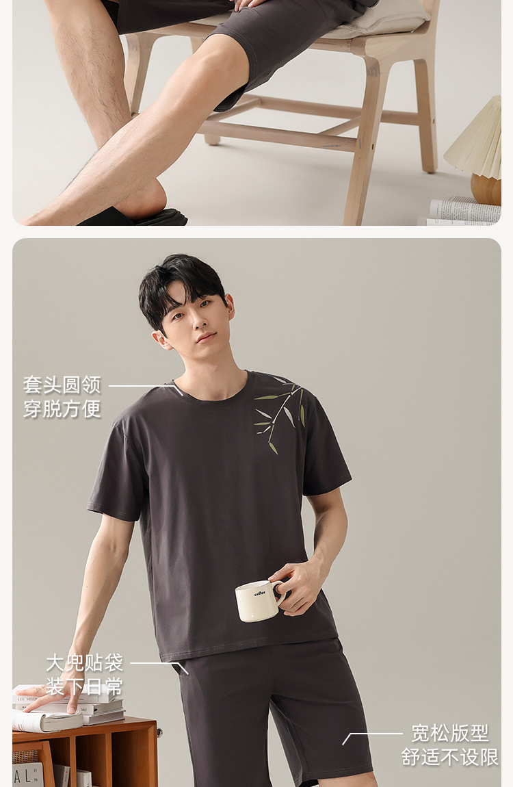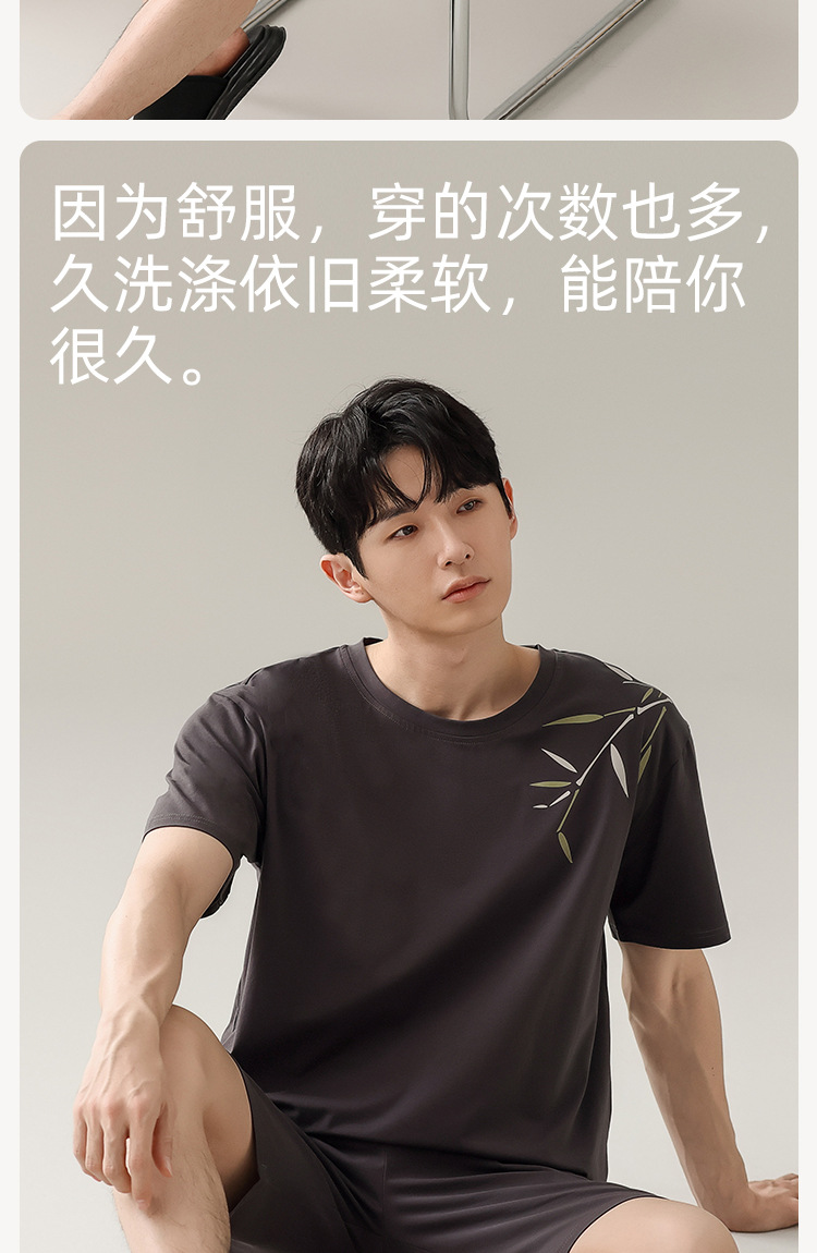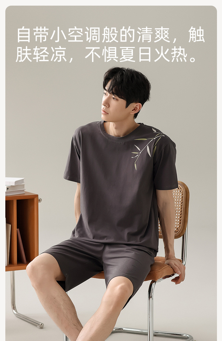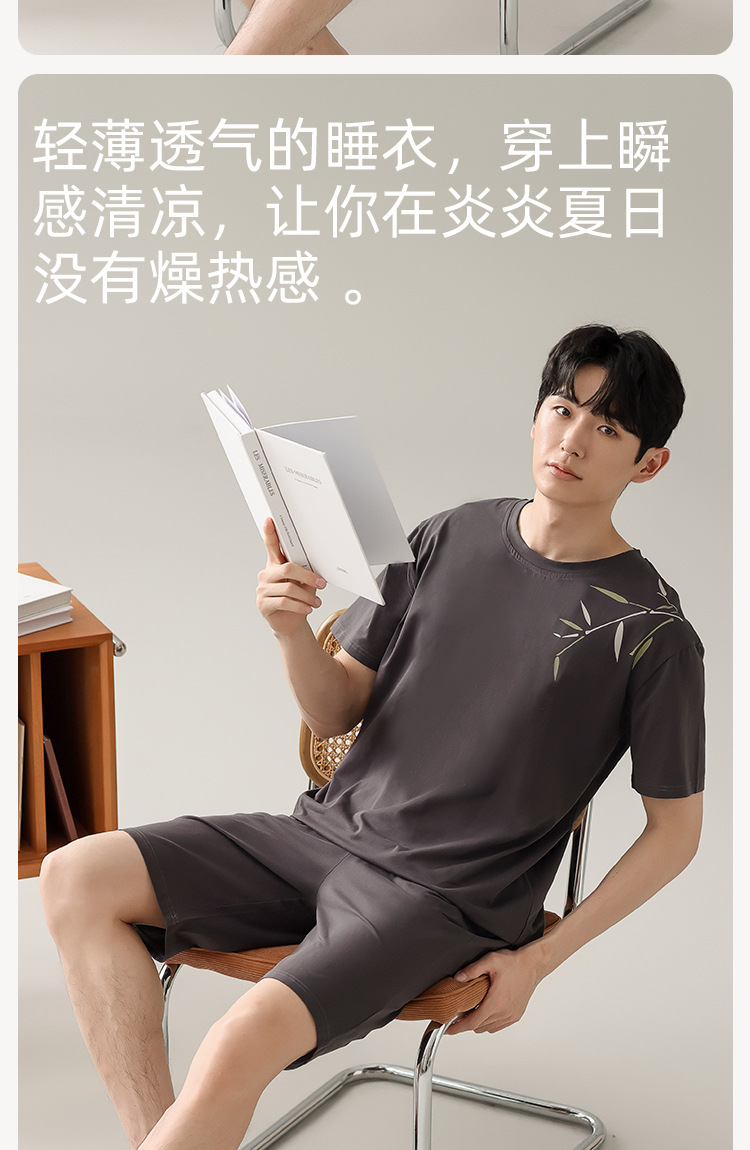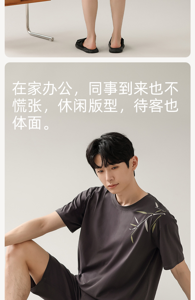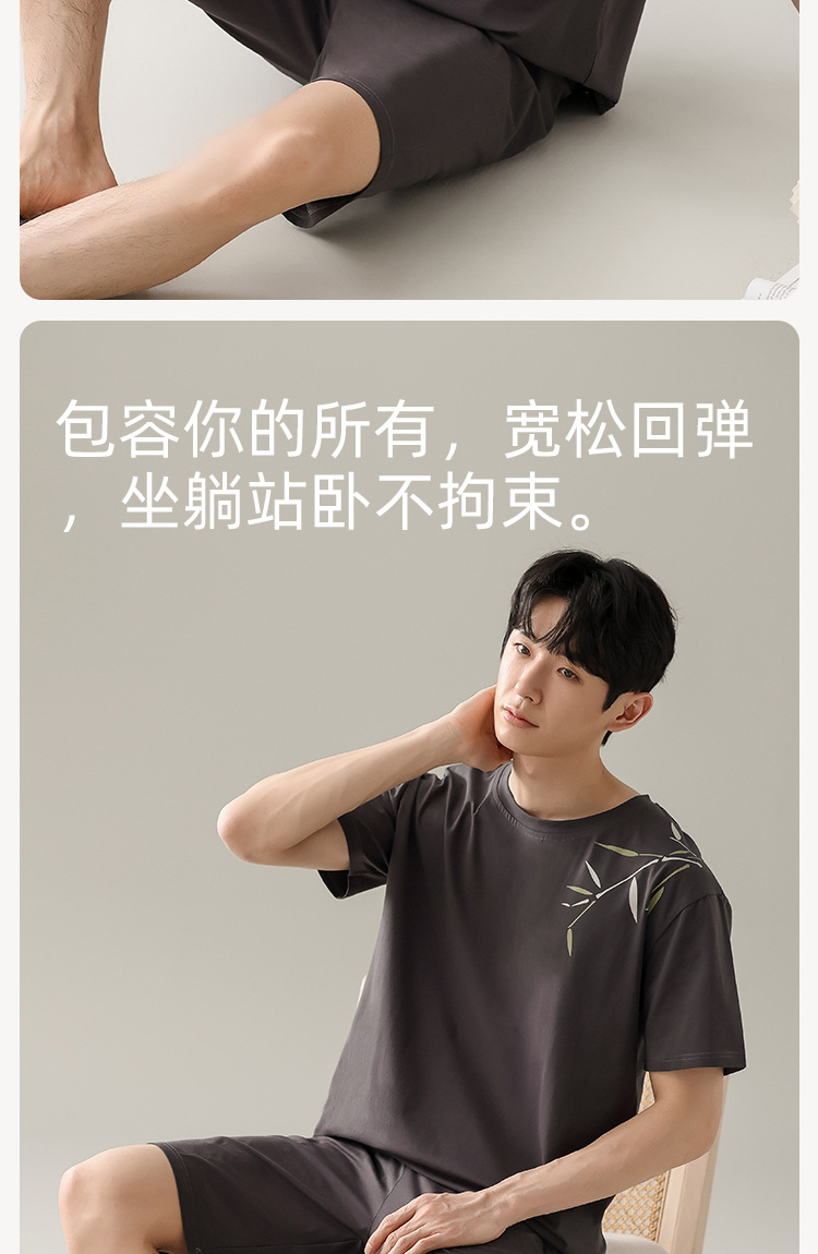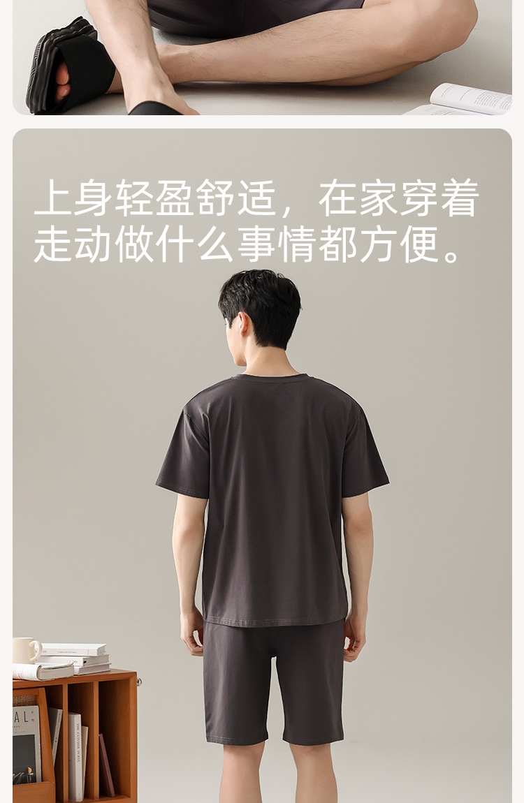 2025新型モーダルパジャマ男性夏の薄い半袖半ズボンの家の服のスーツの純色のカジュアルな外着ができます。