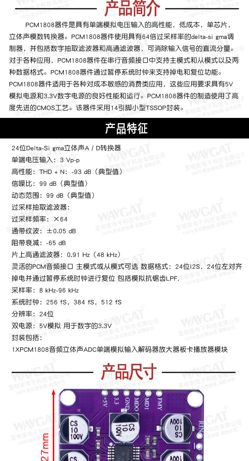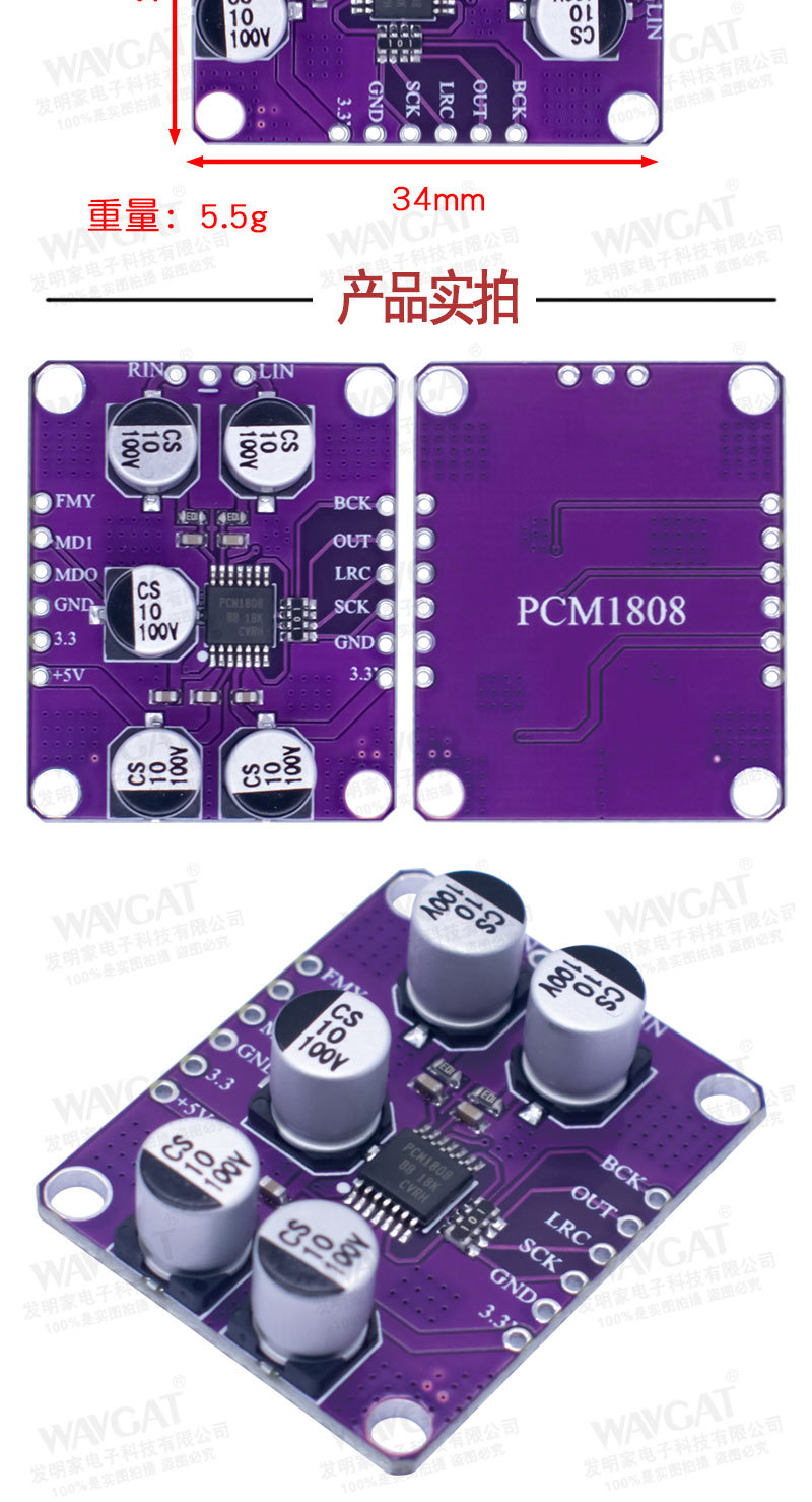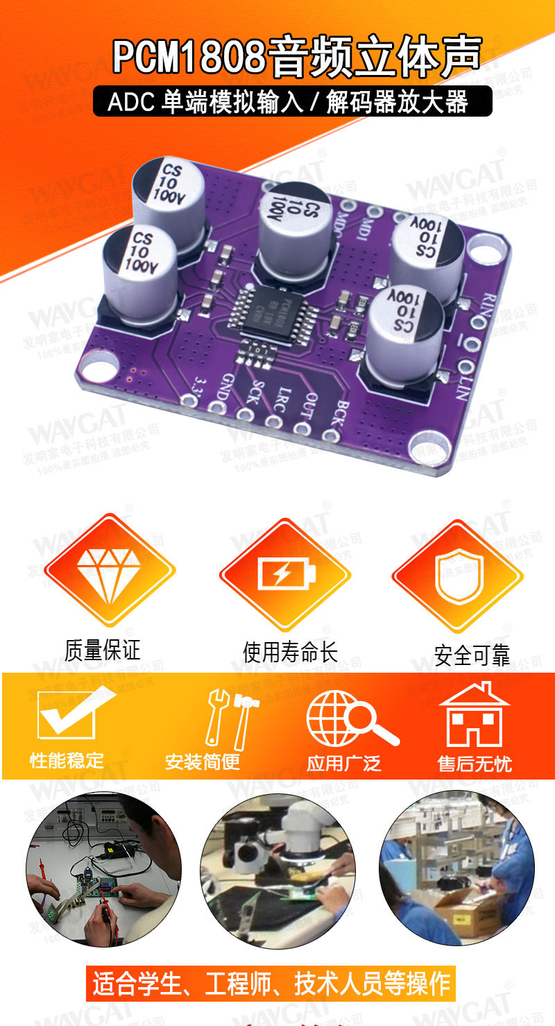 Pcm1808オーディオステレオadcシングルエンドアナログ入力デコーダアンプボードプレーヤーモジュール