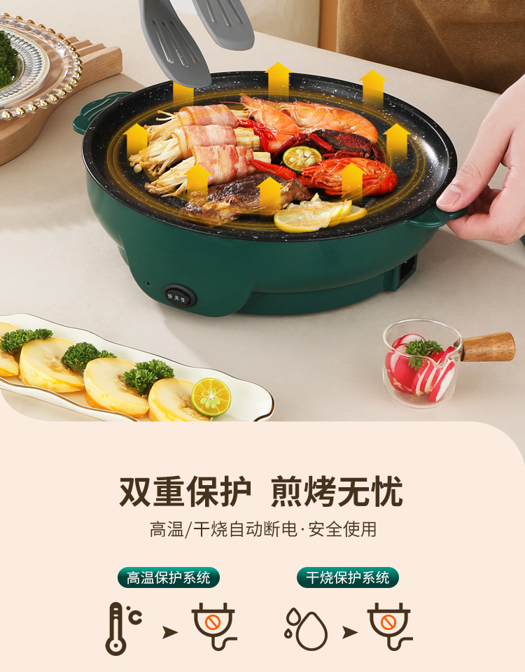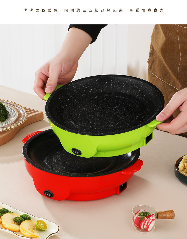 電気焼き皿多機能焼肉皿新型韓国式電気焼き皿家庭用無煙無粘バーベキュー鍋鉄板焼肉鍋
