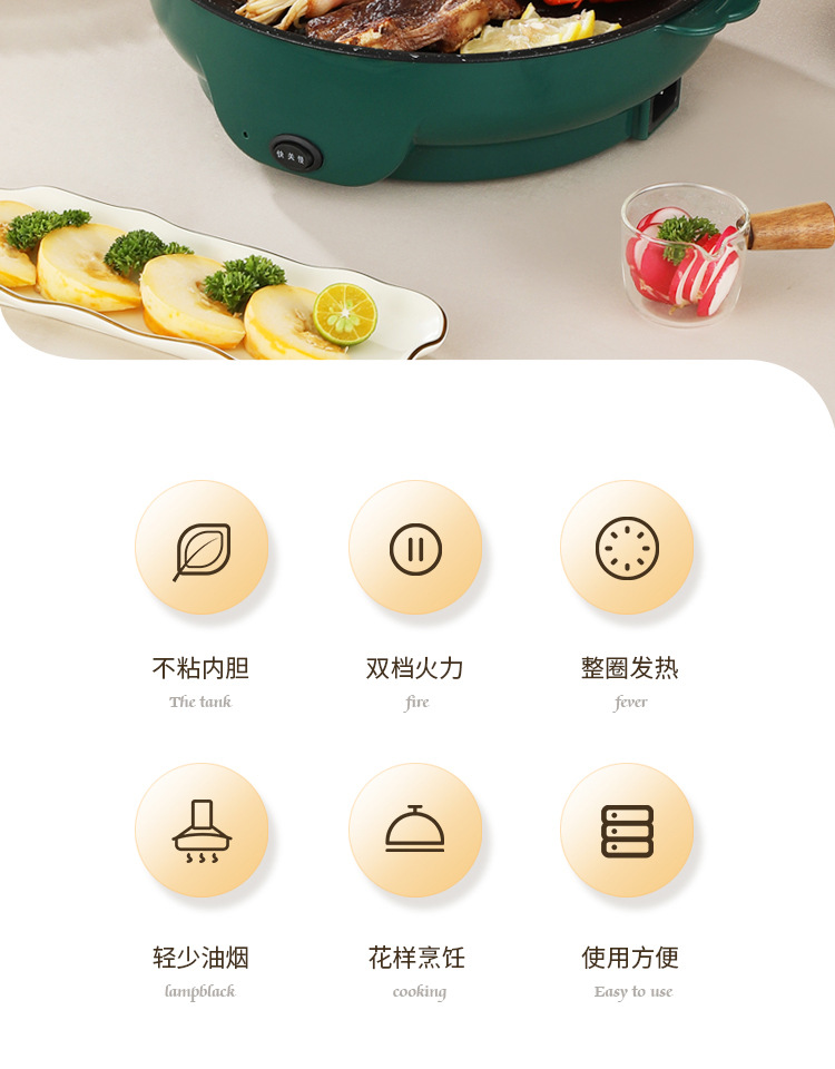 電気焼き皿の出前多機能焼肉ストーブの一体式は鍋の家庭用電気焼き皿の焼き肉皿の生焼き皿にくっつかないです。