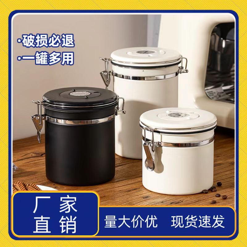 新品304ステンレスコーヒー缶スチールスプーン付きコーヒー豆キッチン収納缶保存缶茶葉密封缶
