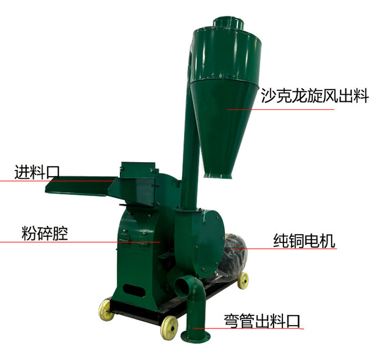ハンマー式万能飼料粉砕機大型二口トウモロコシ芯わら草料打糠多機能粉砕機