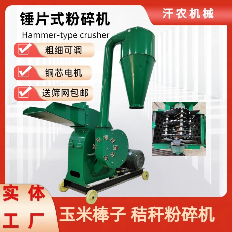 锤片式玉米棒子饲料粉碎机小型干秸秆稻谷壳磨粉机多功能锤片粉碎