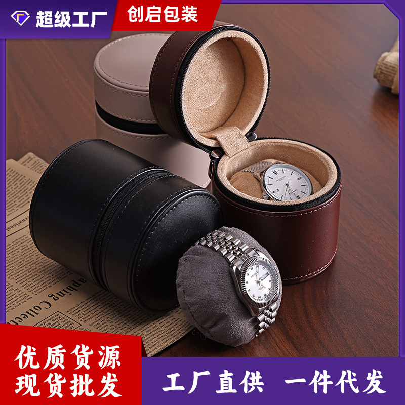 ラウンドフリップカバー腕時計ボックスクリエイティブジッパーPUレザー腕時計バッグ旅行携帯バッグ腕時計収納ボックス