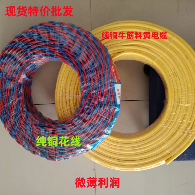 花線交織線黄ケーブル一巻純銅牛筋材料電線二色線屋外工事現場コード二芯