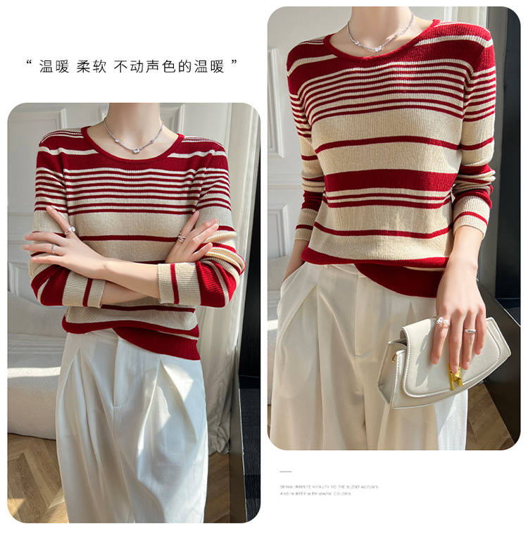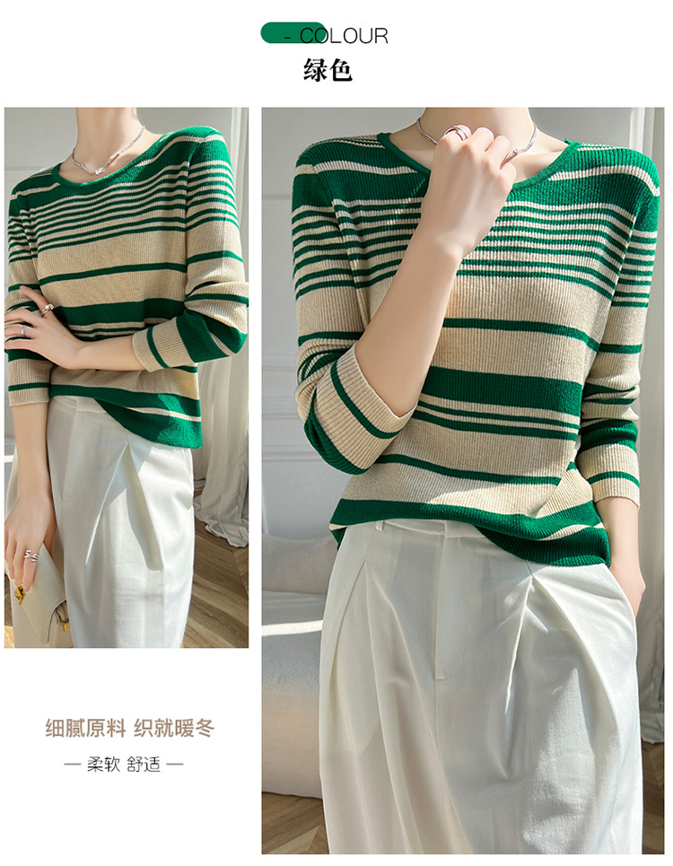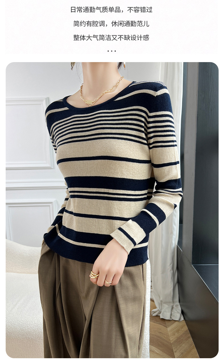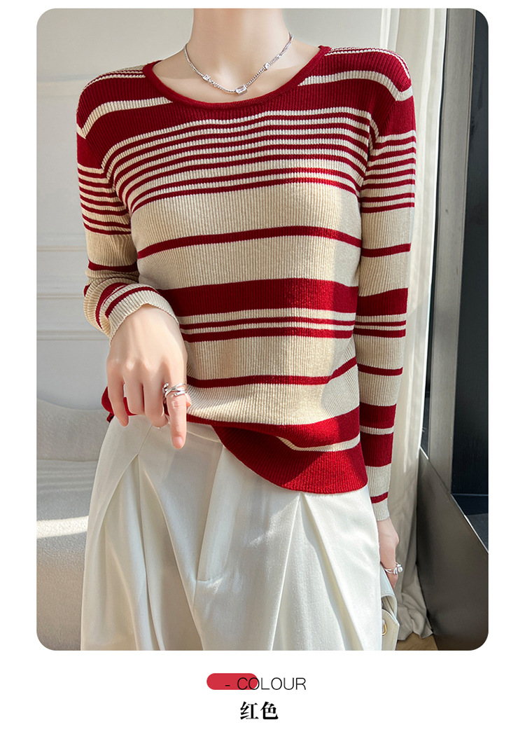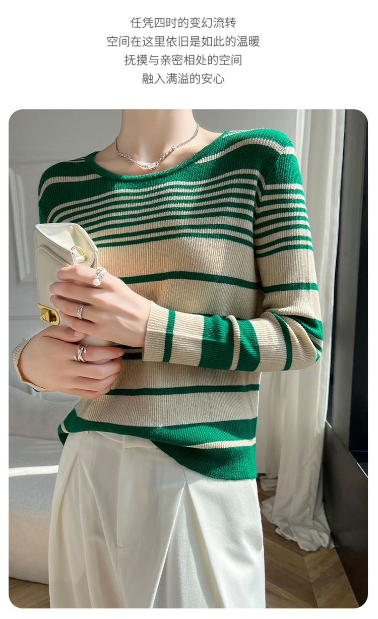 スリムストライプの丸首のニットの春の色合わせのセーターの女性の気質のプルオーバーの短い上着の底のシャツ