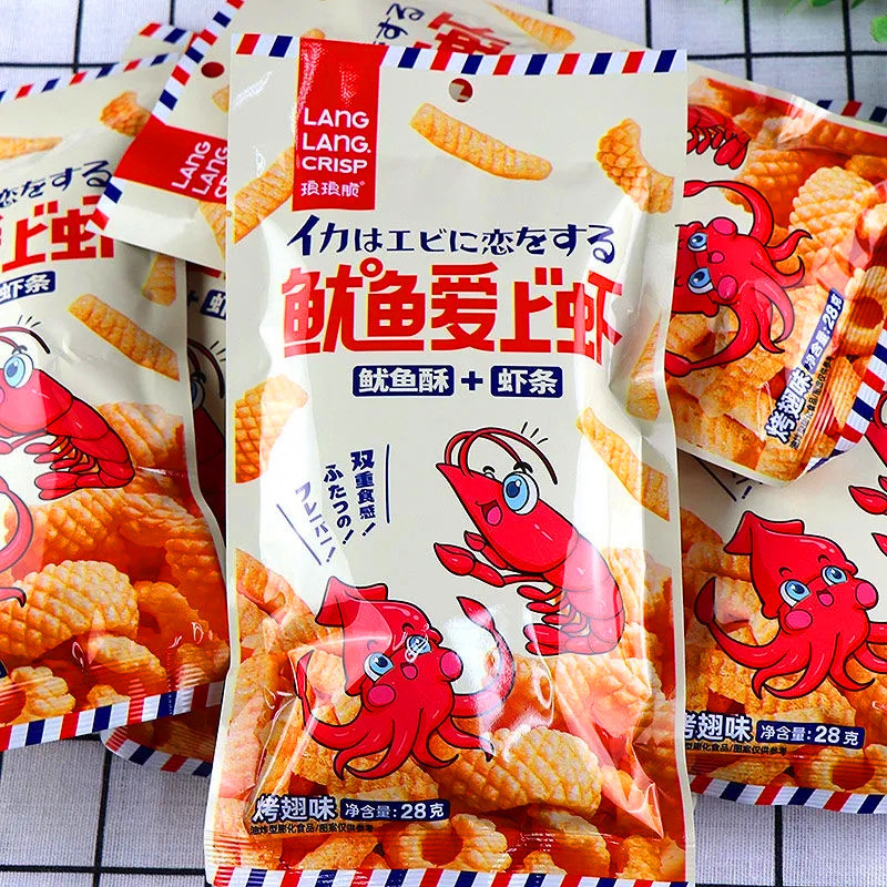 朗々としたイカが好きになりました。エビの焼き羽の味ネットの赤いイカのショートブレストオフィスのカジュアルなスナックです。