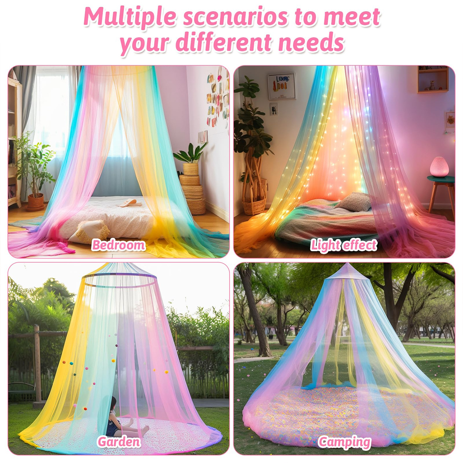 設置不要のドーム型カラフルプリンセス蚊帳 吊り下げプリンセス蚊帳 暗号化折りたたみ蚊帳 新型レインボー蚊帳 ダブルベッド