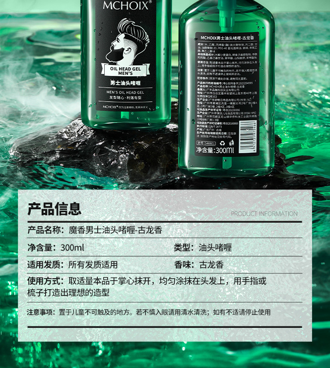 魔香レトロ髪油男性大背型ジェル水セットジェル