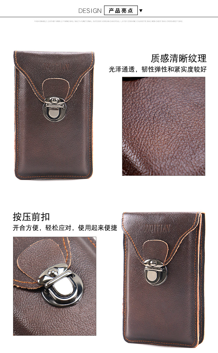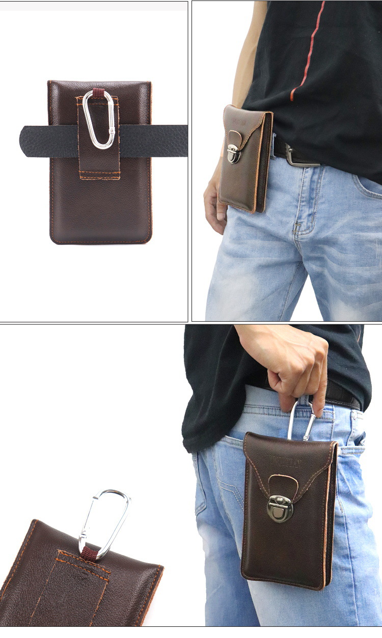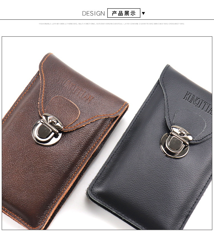 新商品の本革はベルトを着て多機能の携帯バッグを持っています。
