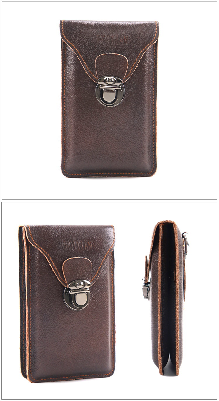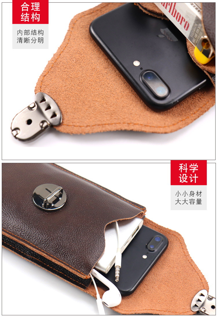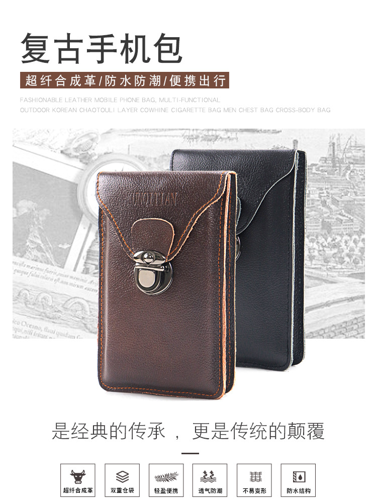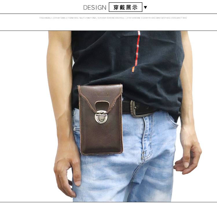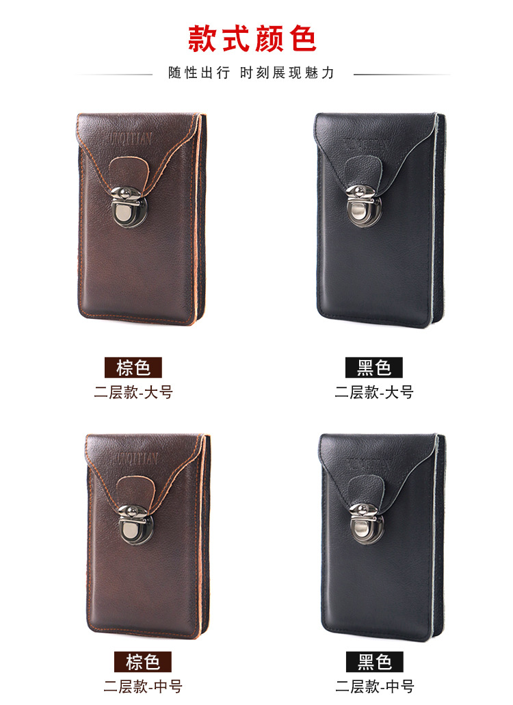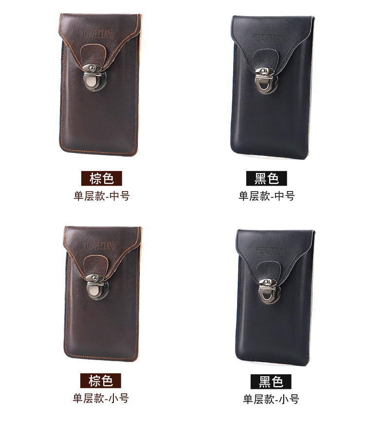 新しいスタイルの本革ウエストバッグ、メンズロック式携帯電話バッグ、シングル/ダブルレイヤー、超薄型防水、ベルトに通せる多機能バッグ