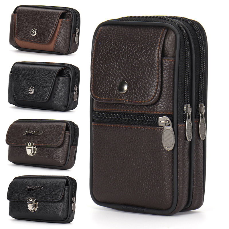 新しい本革男性携帯バッグ多機能ウエストバッグ腰カバーベルト携帯電話バッグ携帯電話バックパック