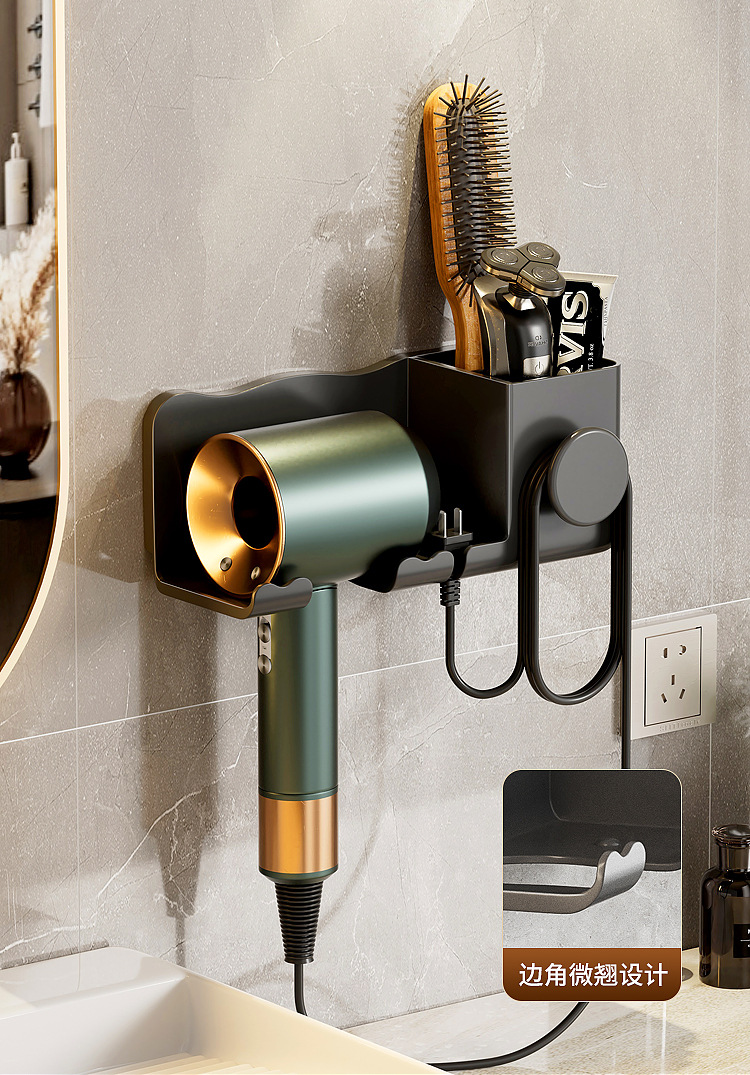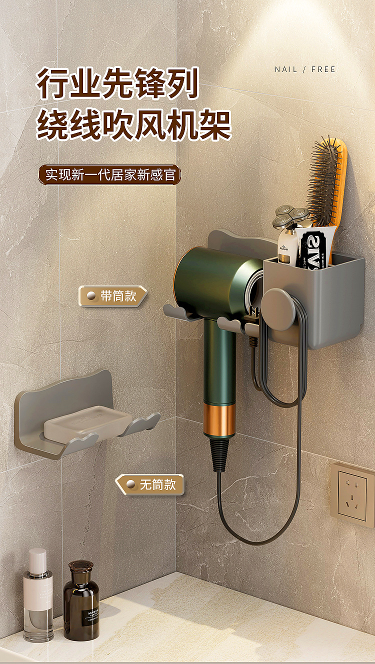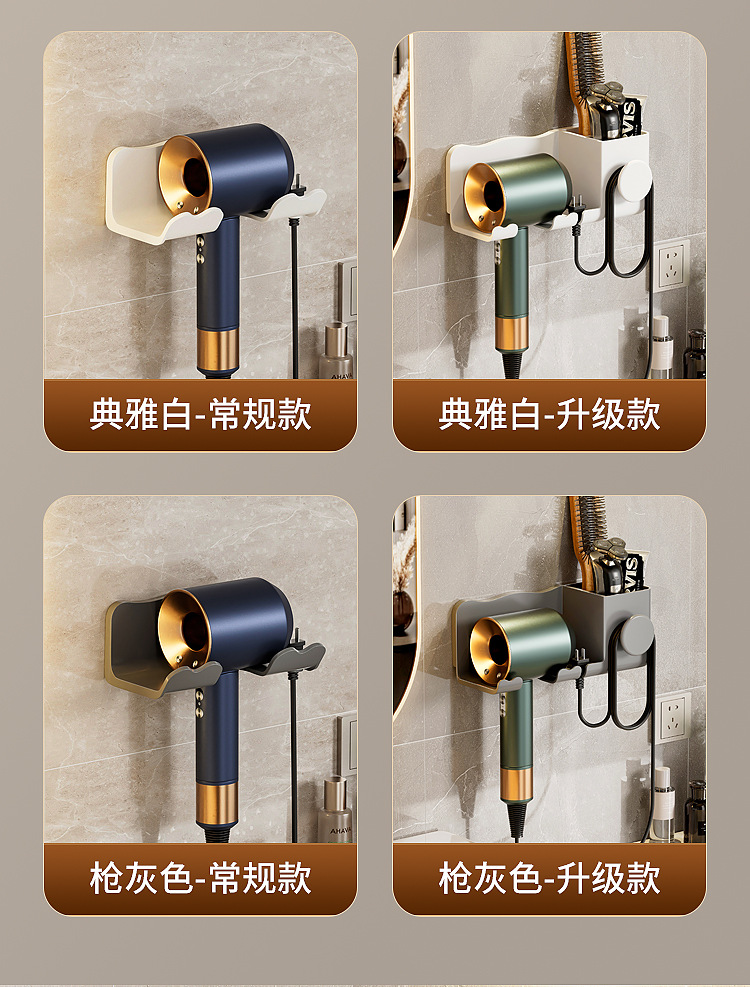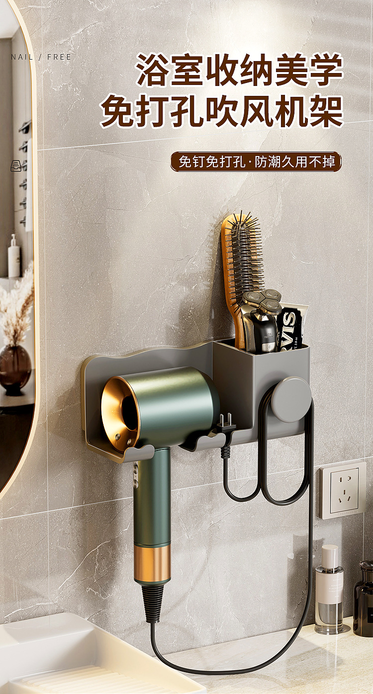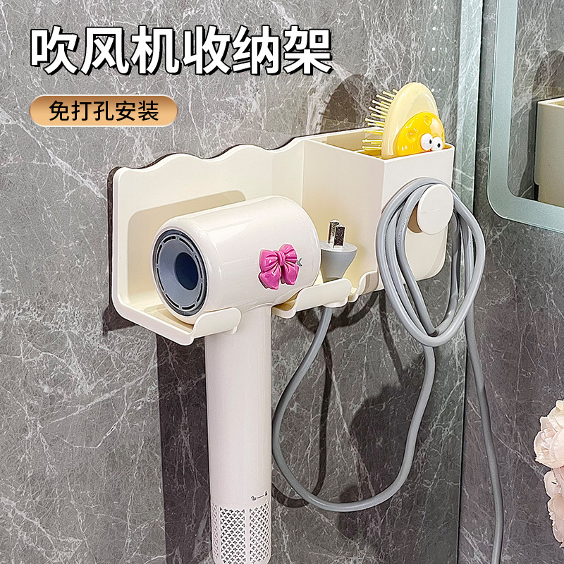 免打孔吹风机置物架奶油色浴室收纳架风筒架子多功能电吹风架批发