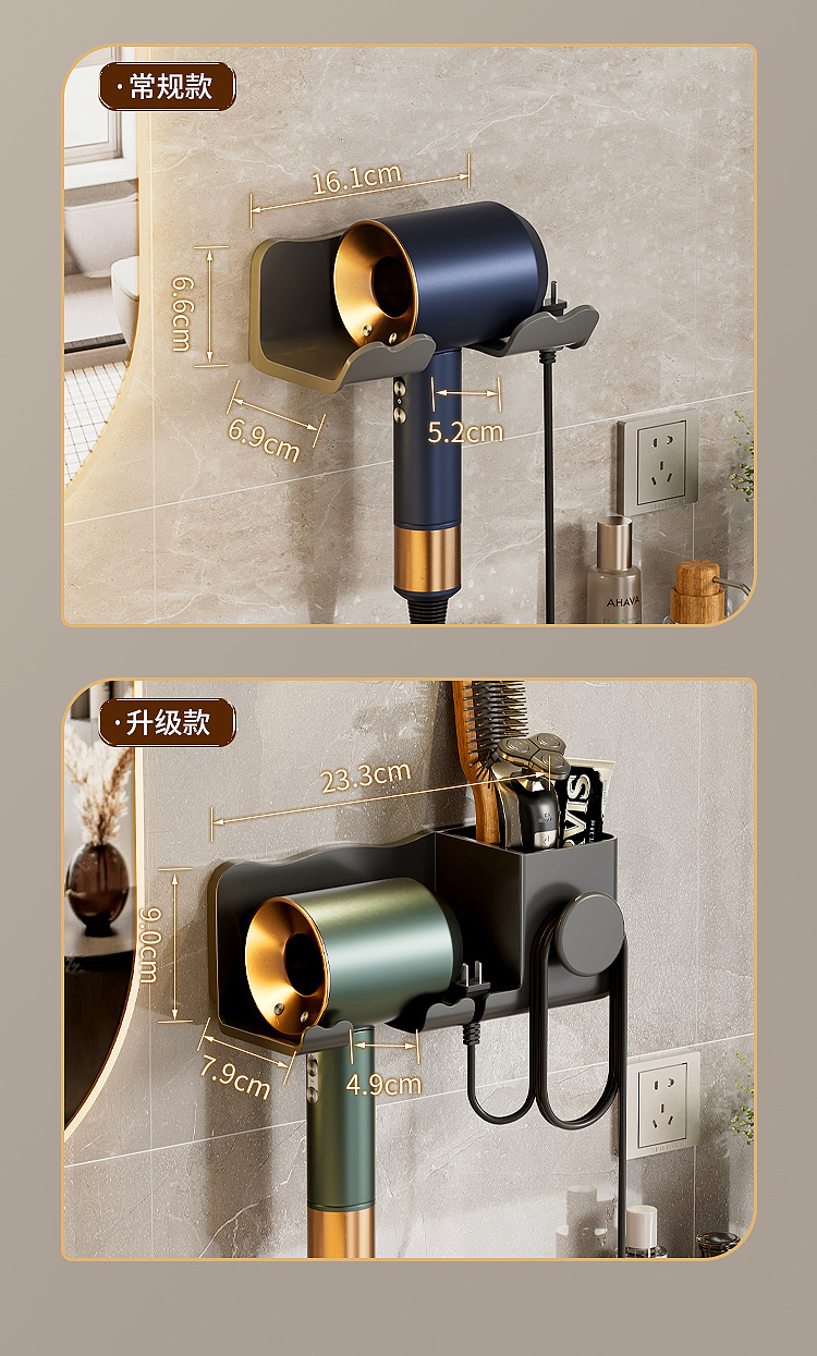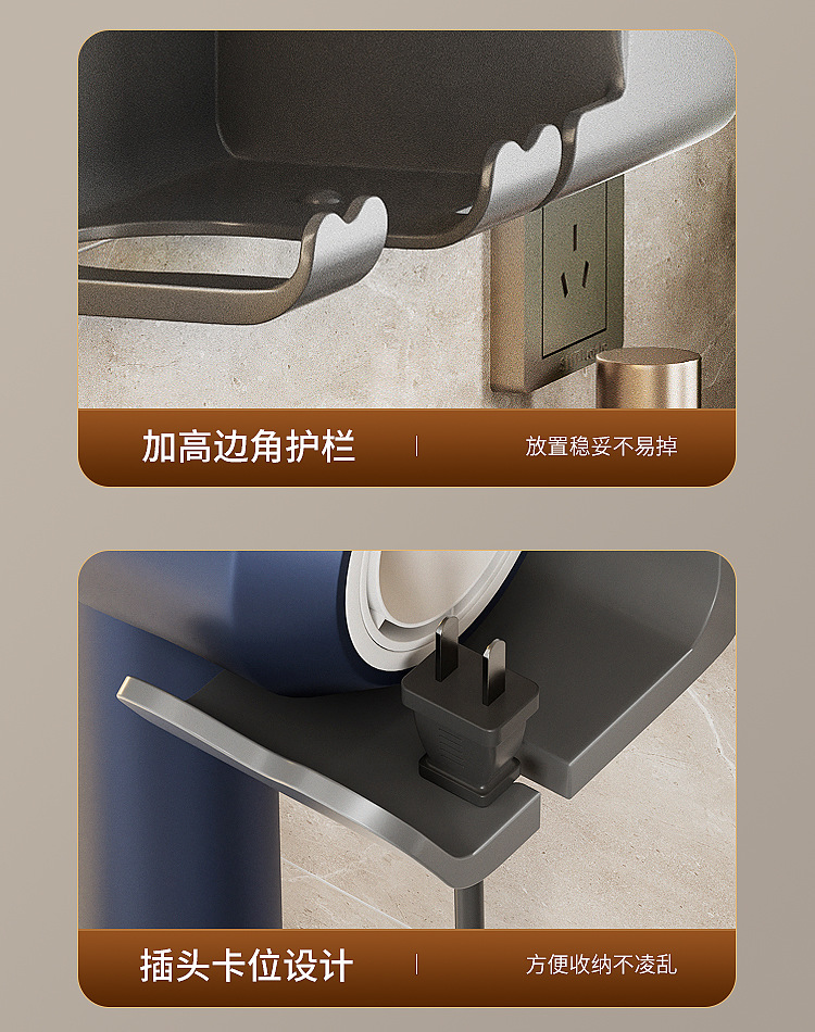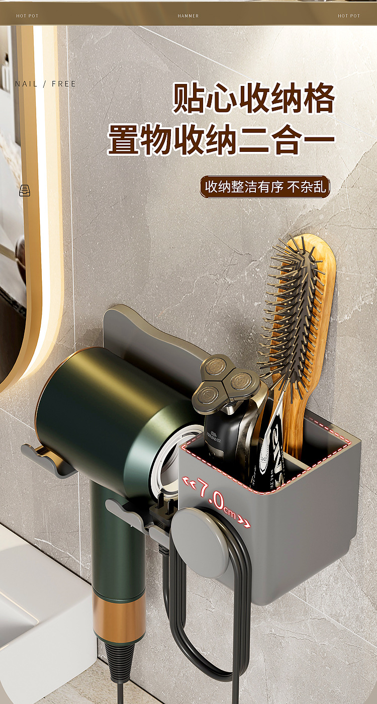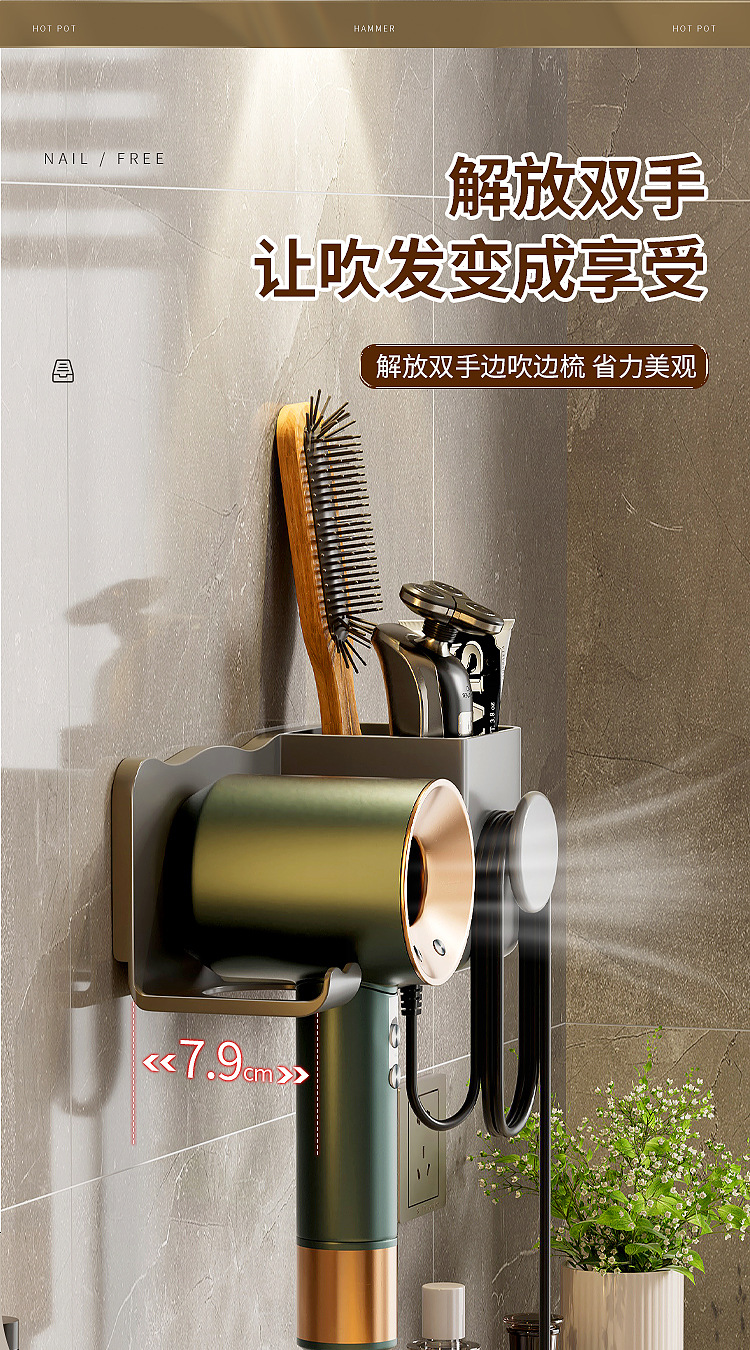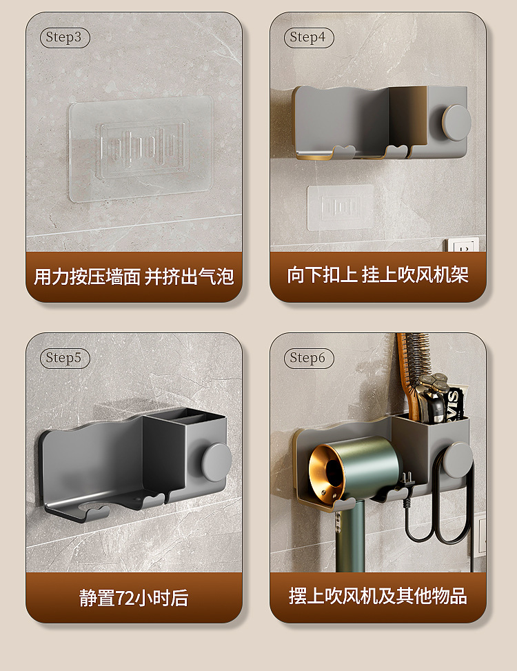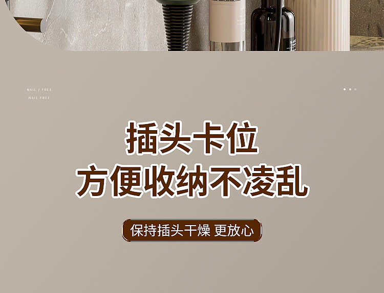 免打孔吹风机置物架奶油色浴室收纳架风筒架子多功能电吹风架批发
