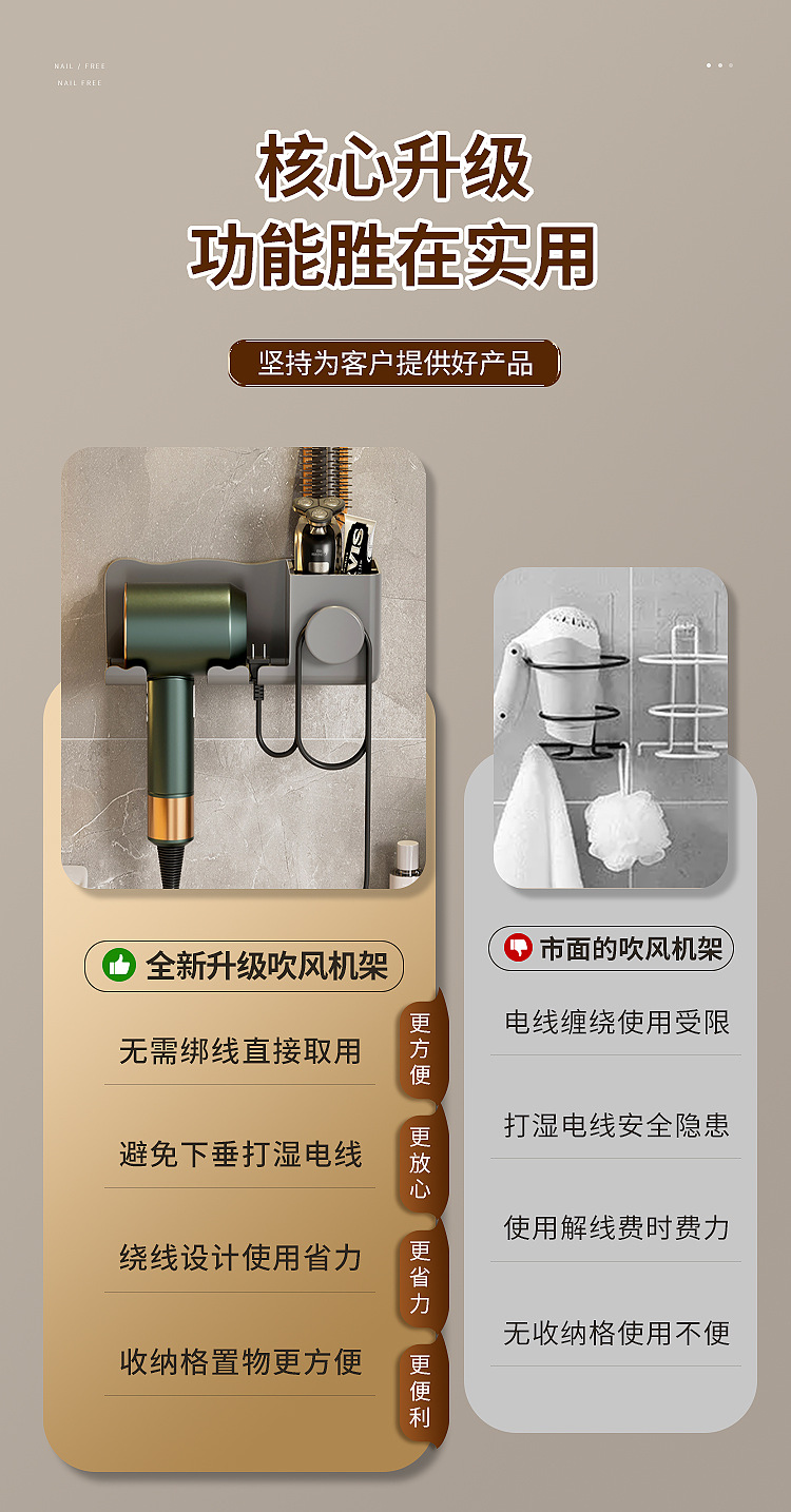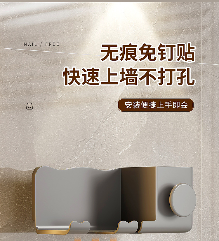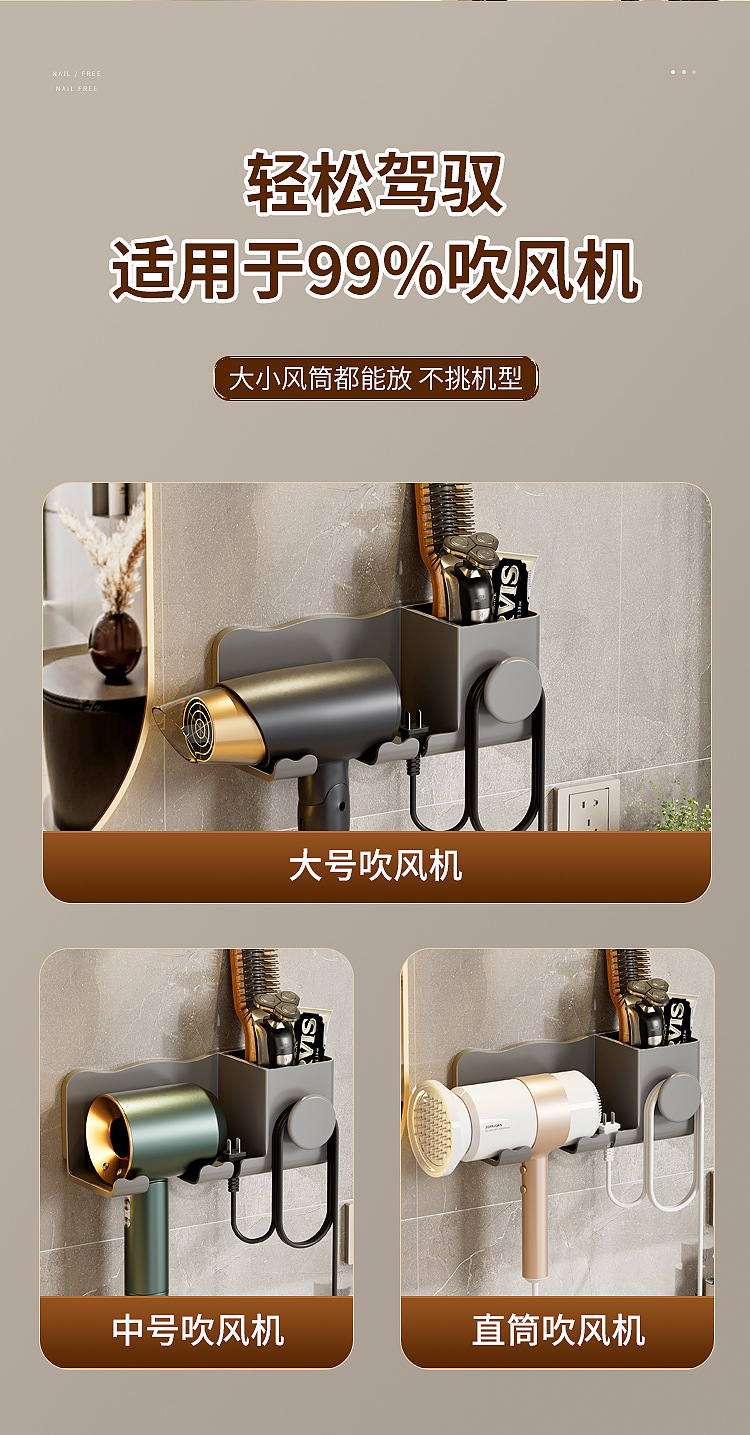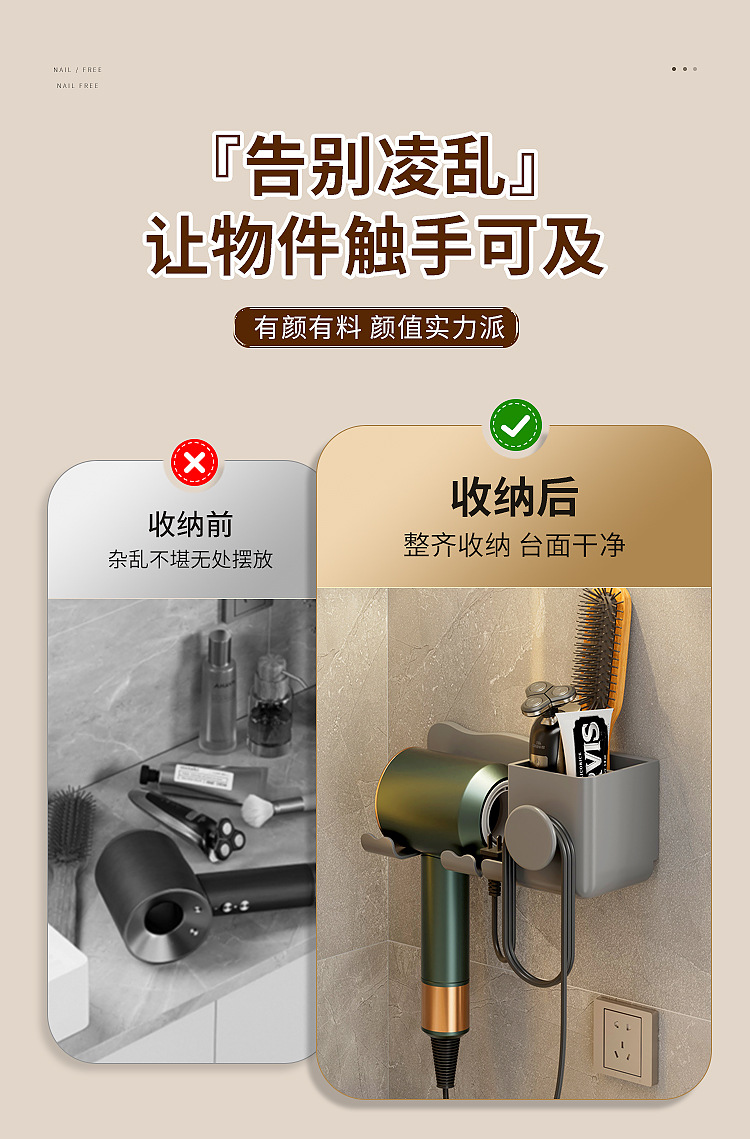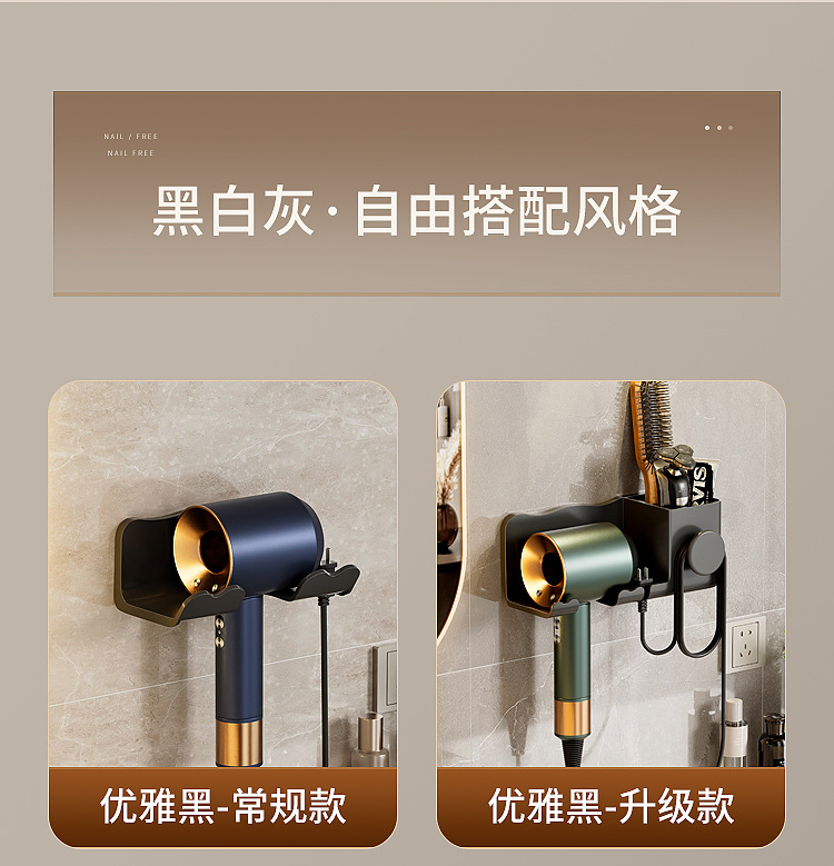 免打孔吹风机置物架奶油色浴室收纳架风筒架子多功能电吹风架批发