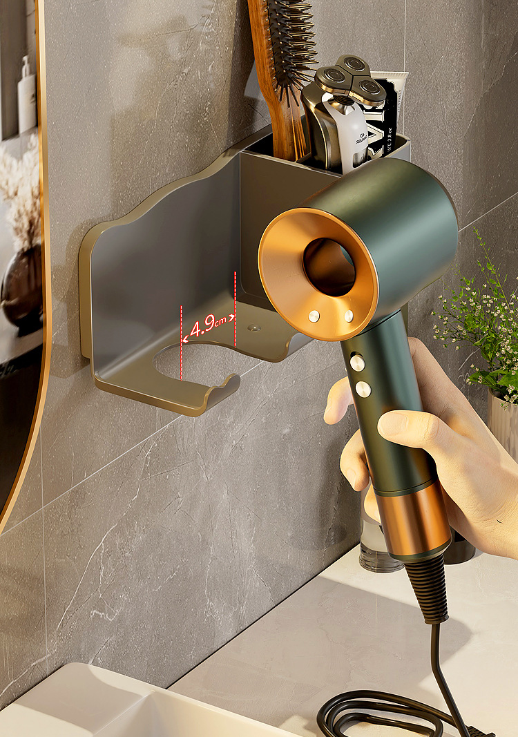 クロスボーダーヘアドライヤーホルダー、穴あけ不要、バスルーム壁掛け式ヘアドライヤー収納ラック、ヘアドライヤー置き場、軽奢風