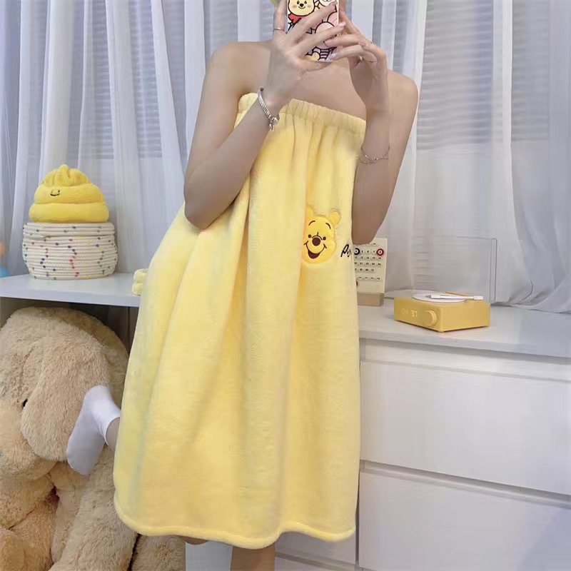 卡通浴裙珊瑚绒加厚浴巾毛巾可穿可裹吸水浴袍干发帽发带洗澡学生